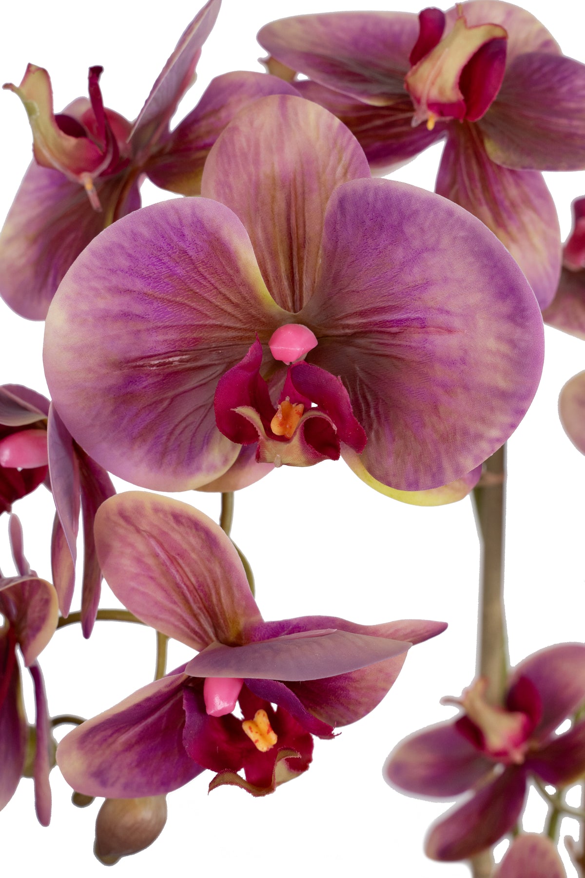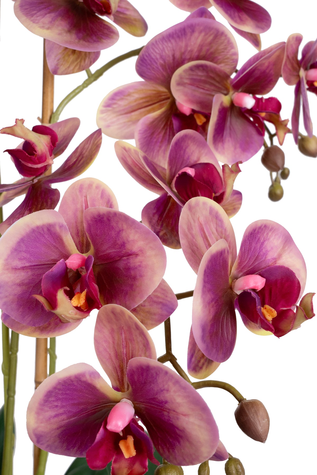 Orhidee artificiala roz-magenta cu alb cu aspect natural H61 cm cu 3 tulpini