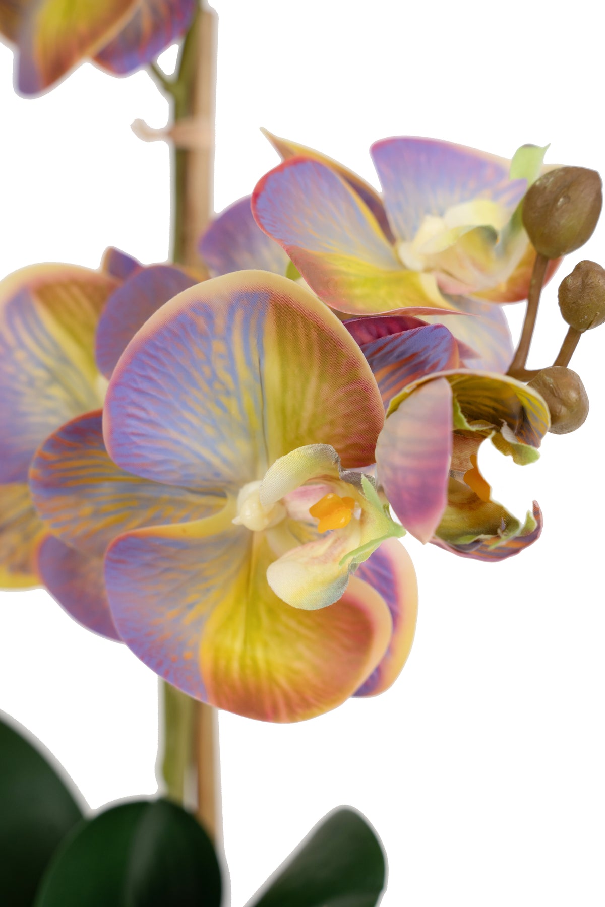 Orhidee artificiala mov cu galben cu aspect natural H90 cm cu 6 tulpini