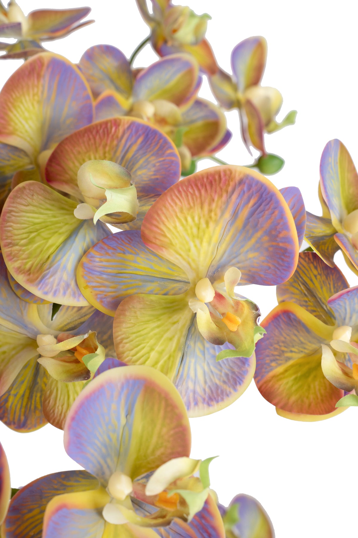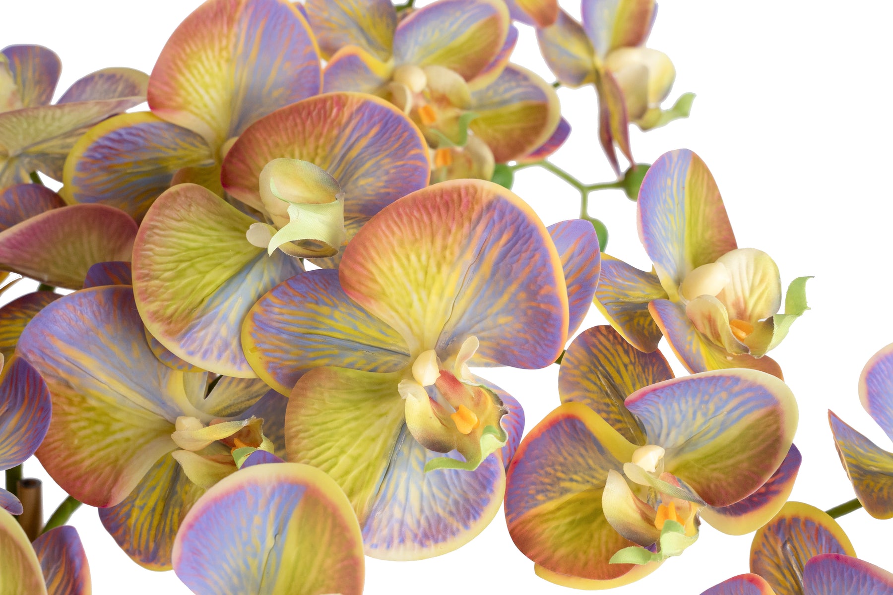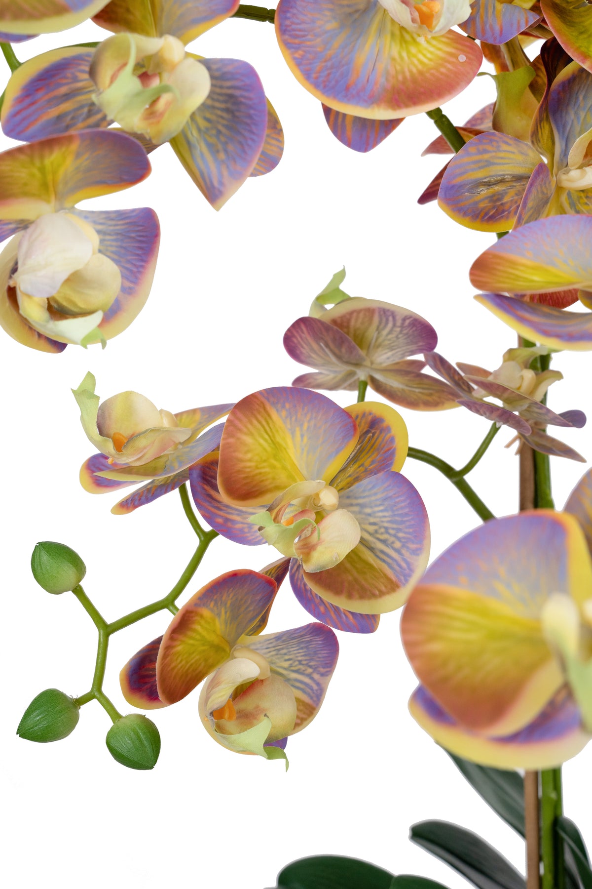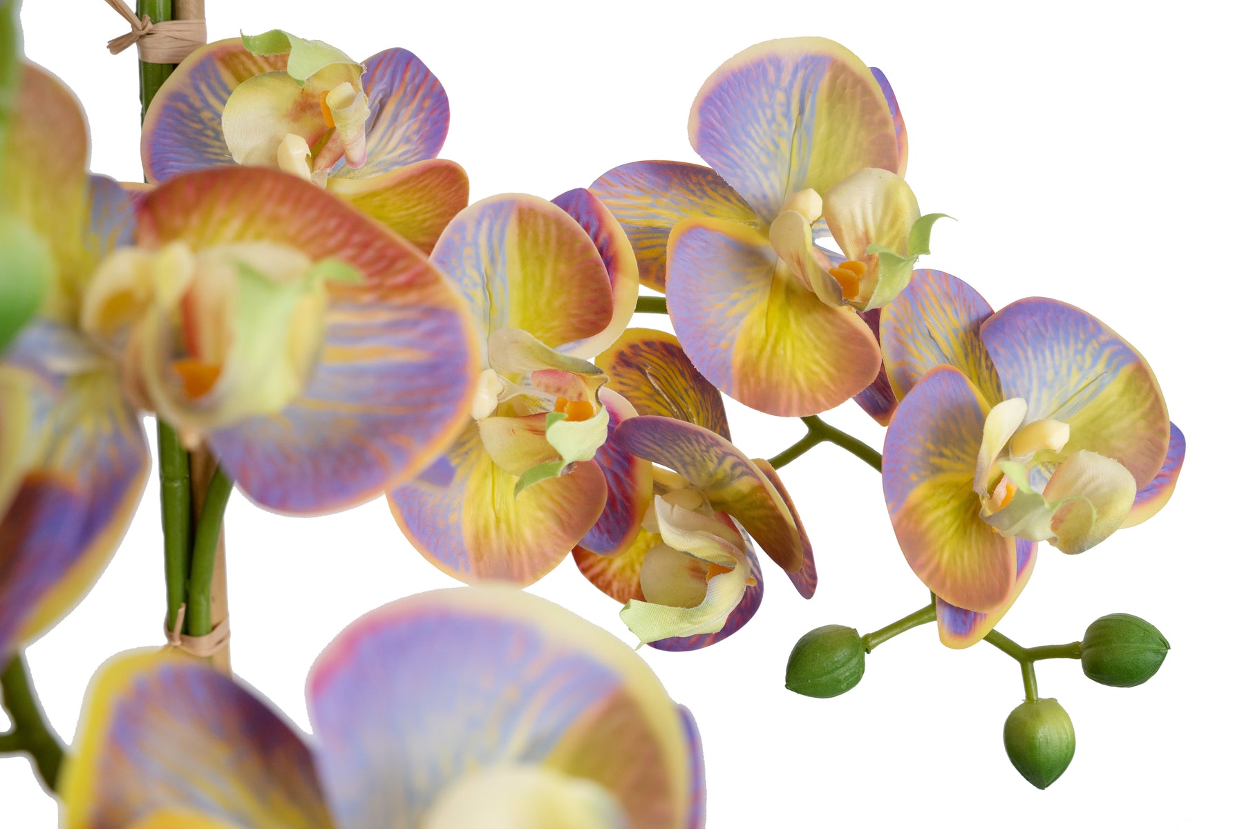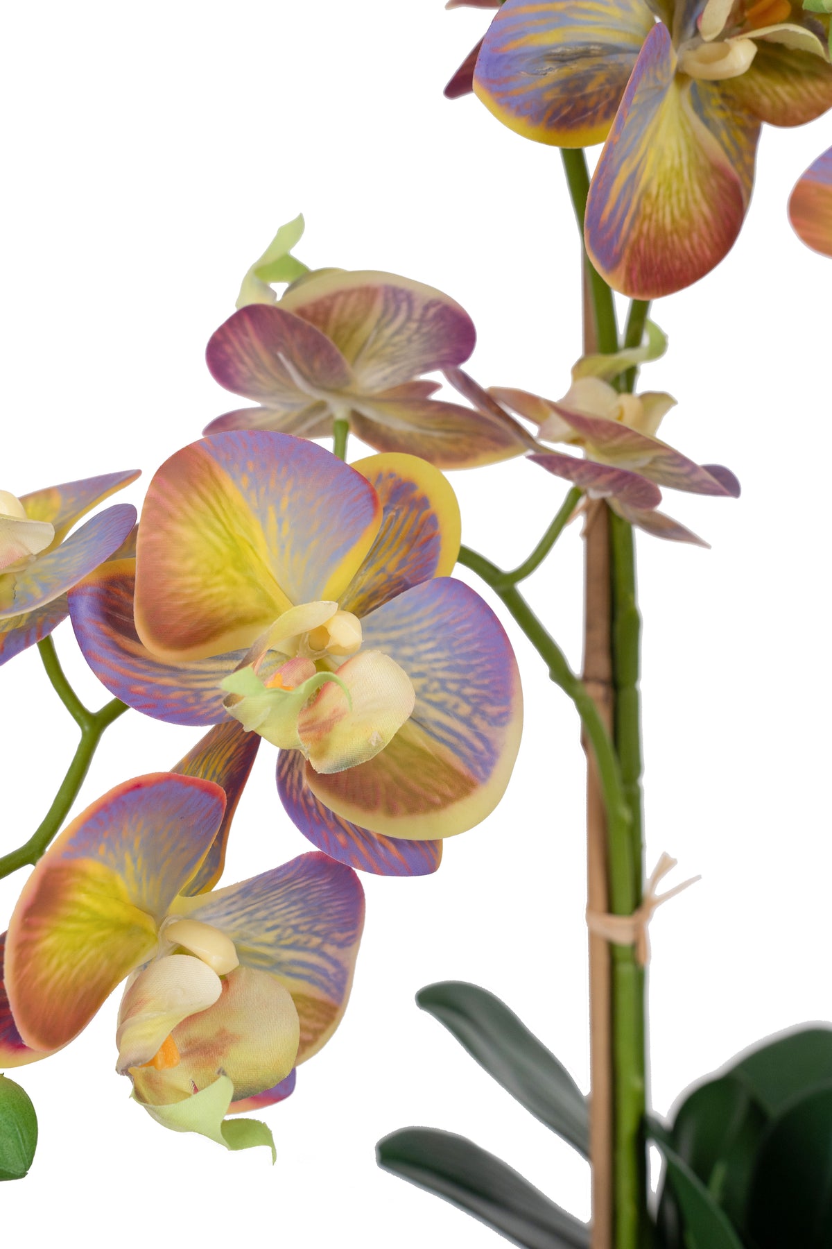Orhidee artificiala mov cu galben cu aspect natural H85 cm cu 9 tulpini