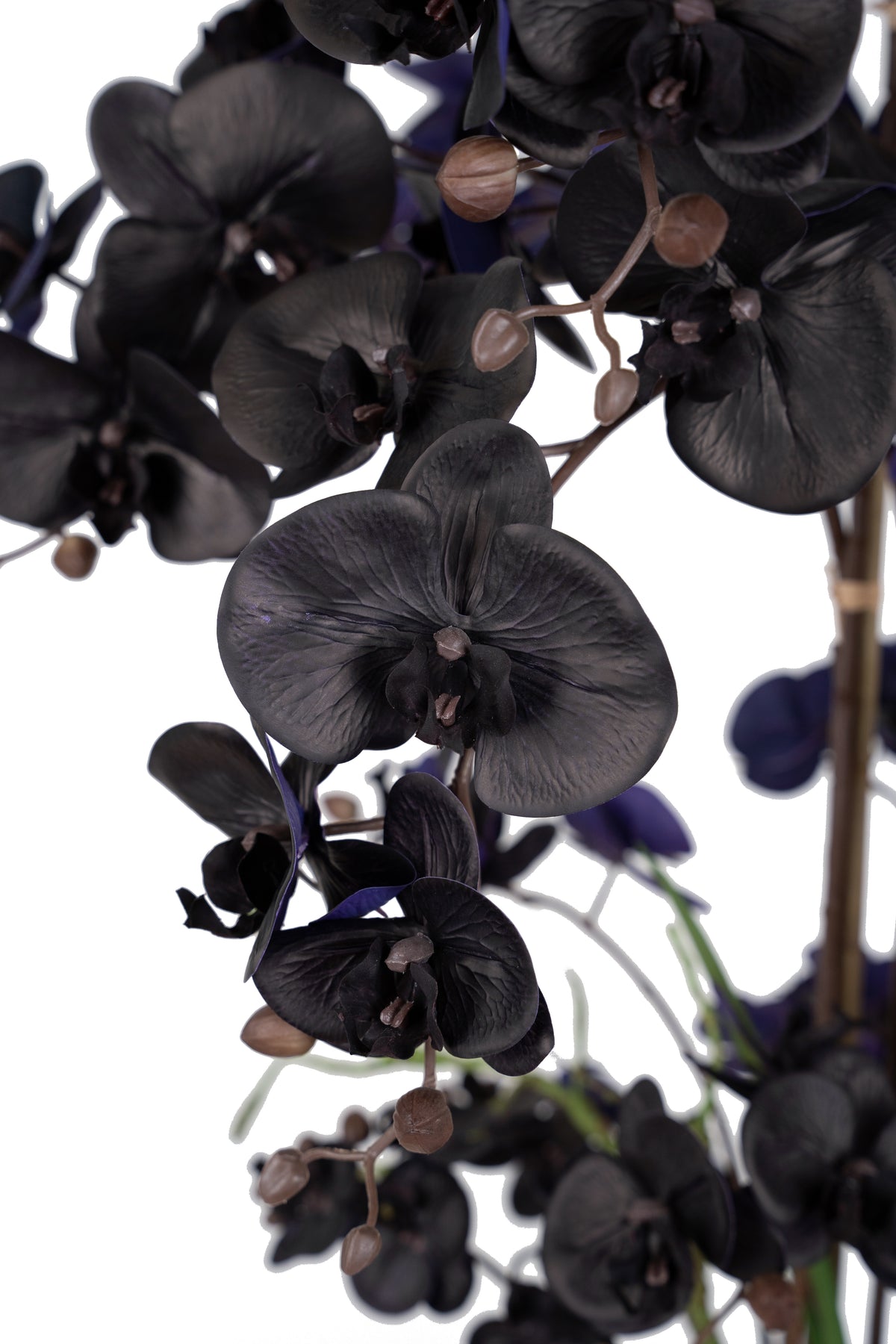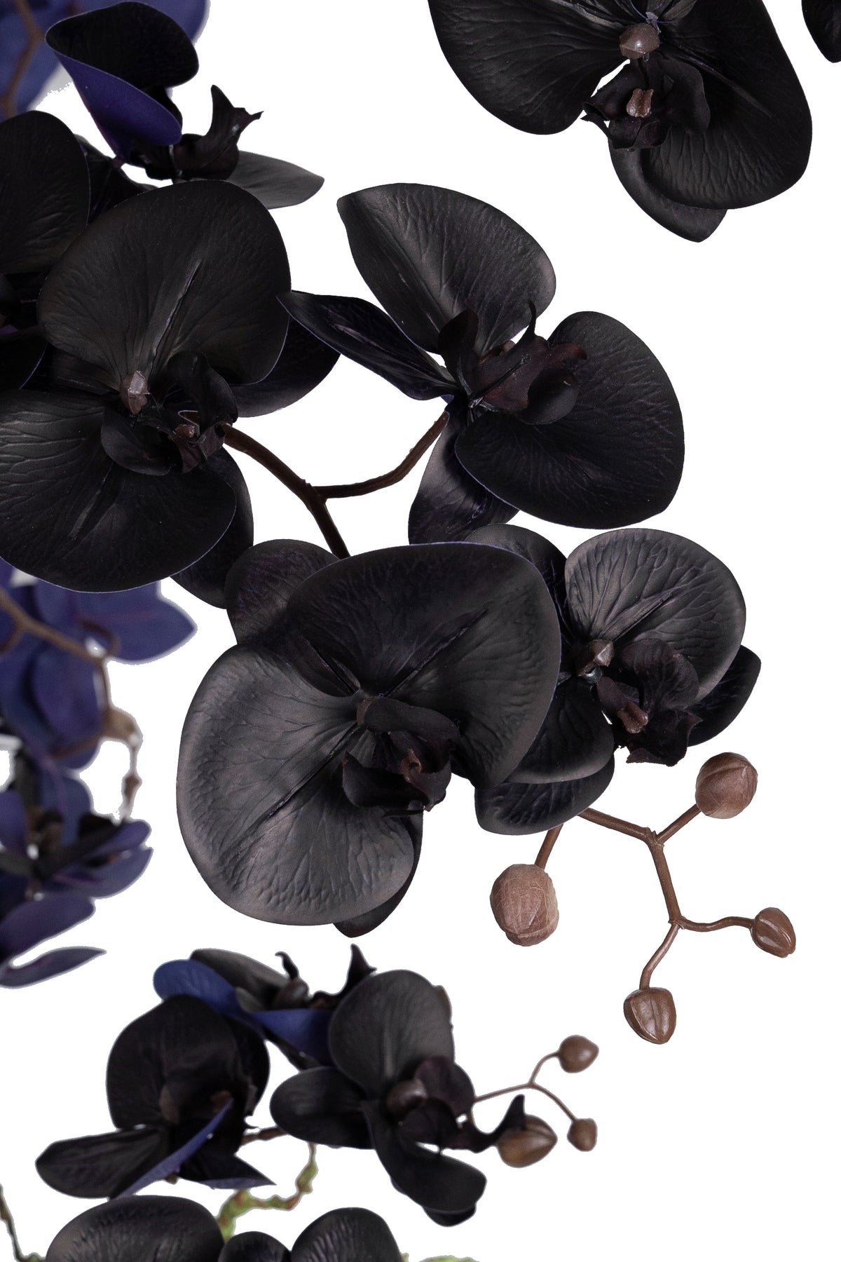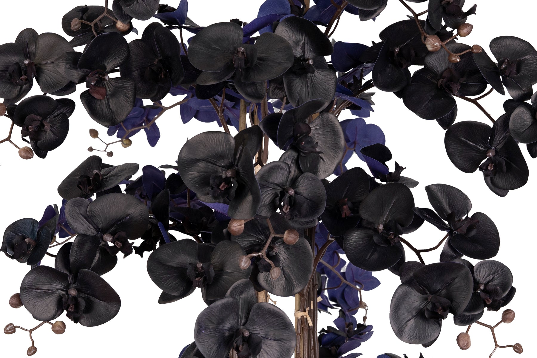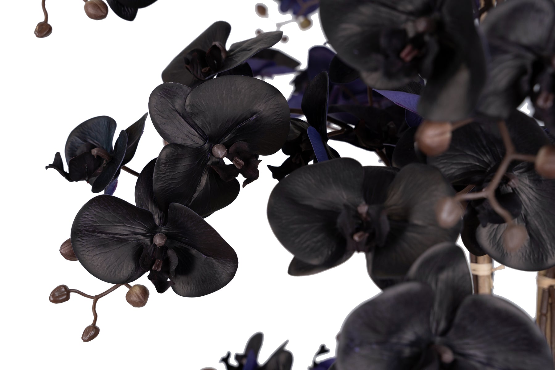 Orhidee artificiala neagra cu aspect natural H120 cm cu 21 tulpini si frunze negre