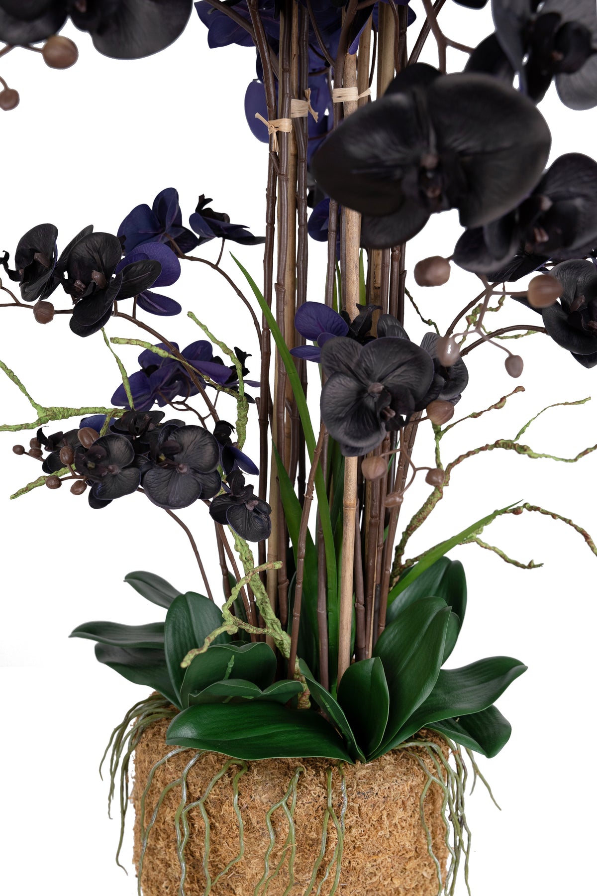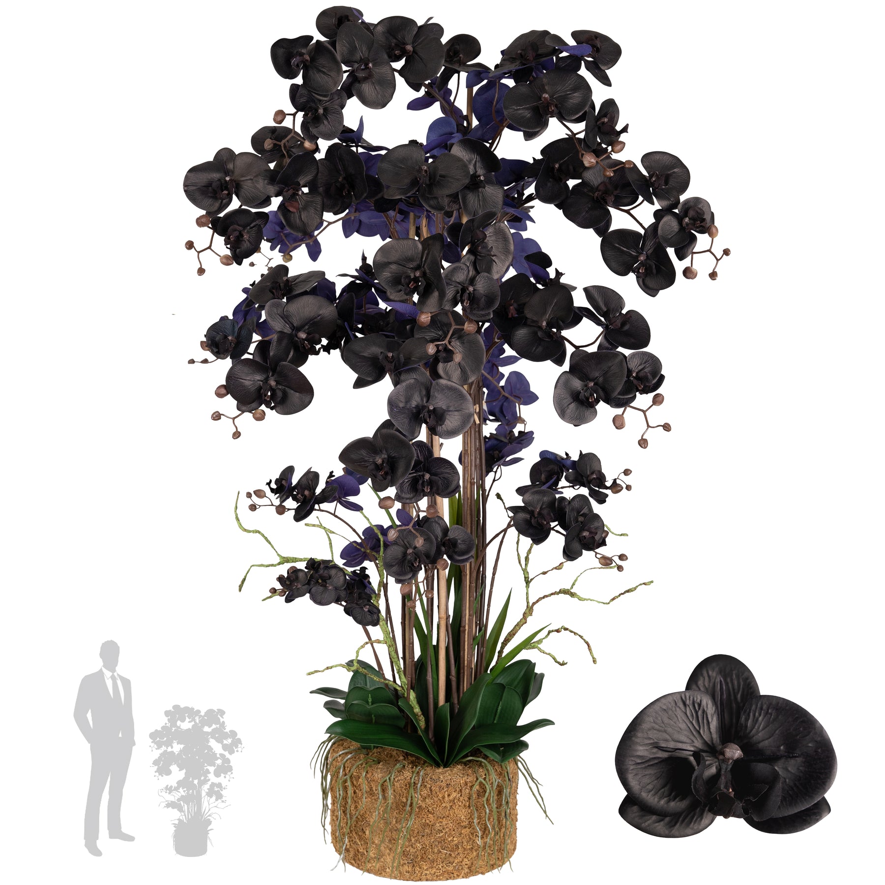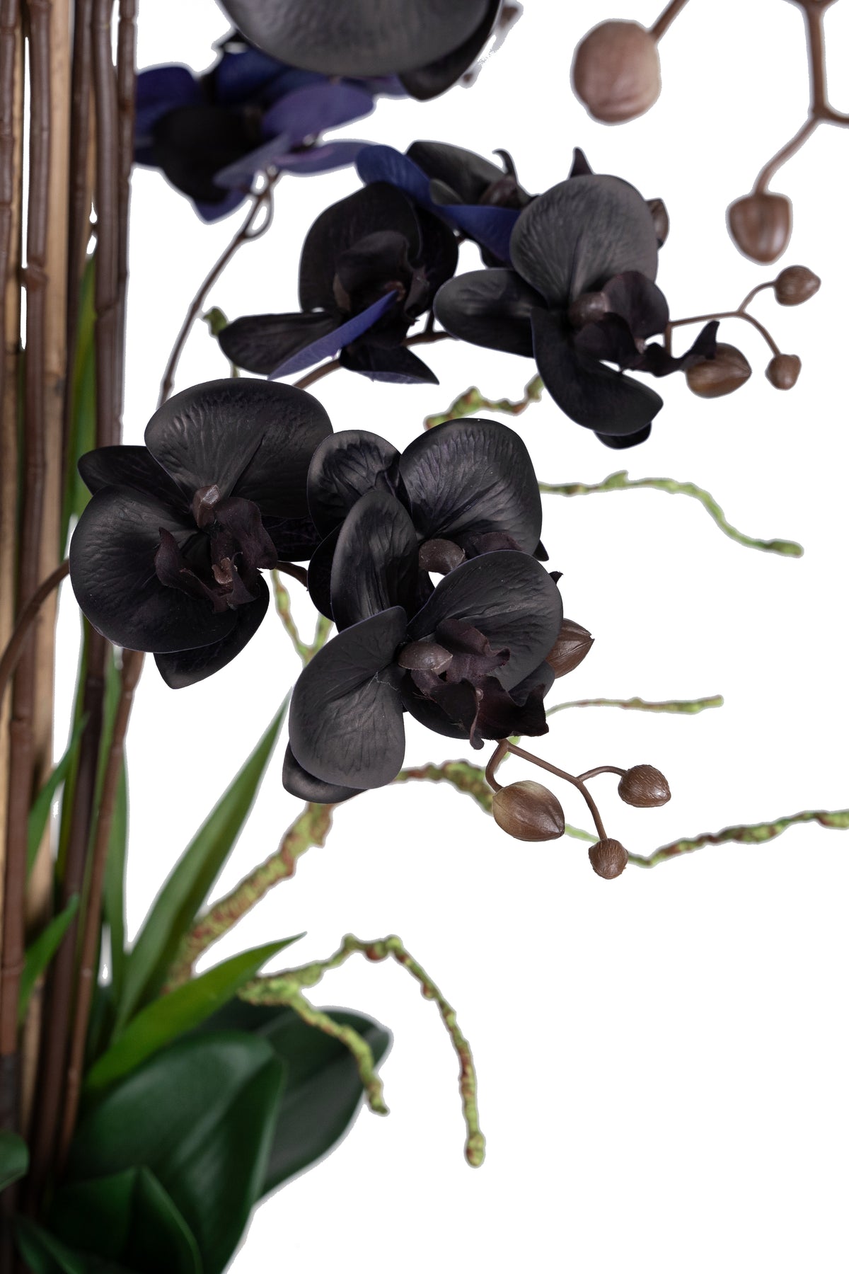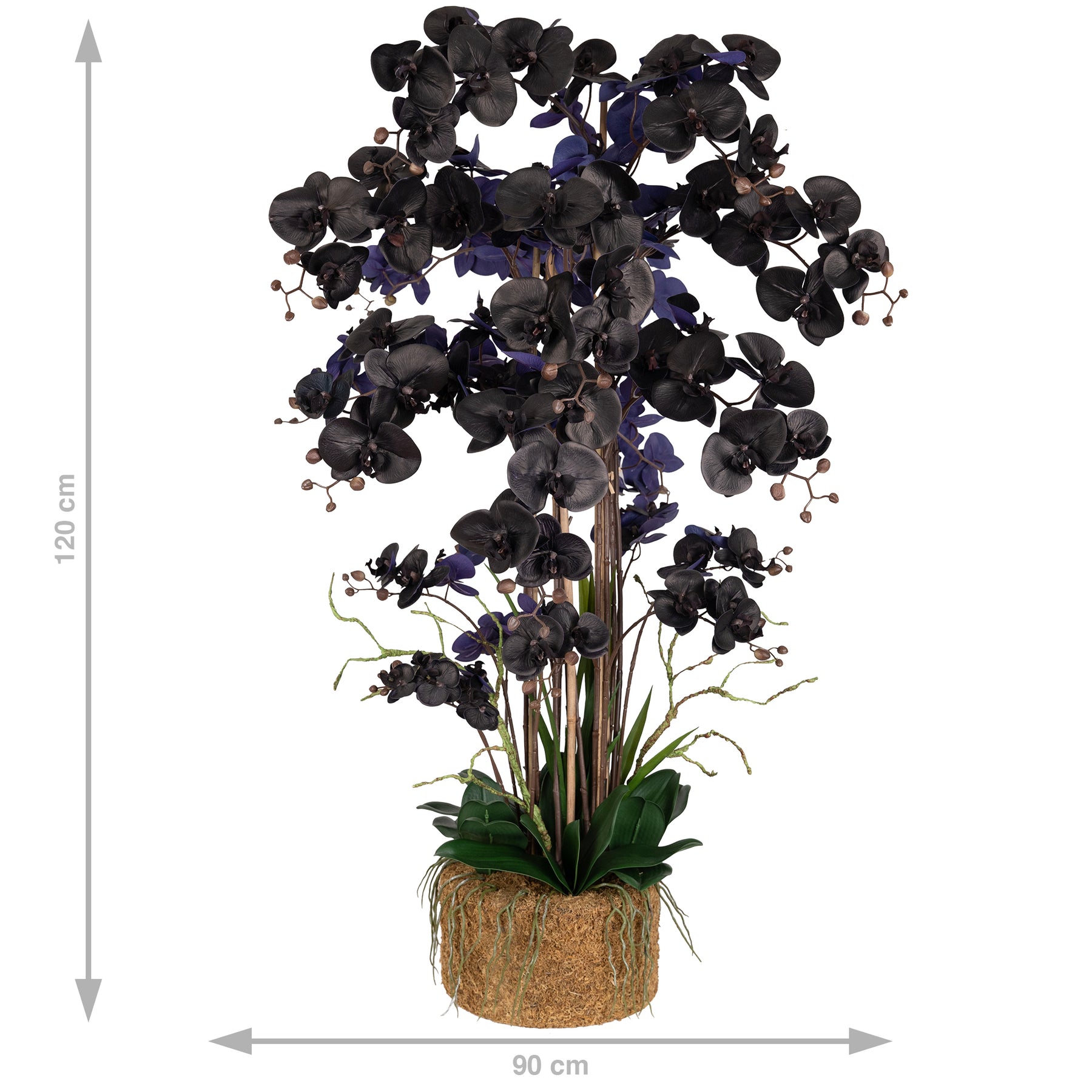 Orhidee artificiala neagra cu aspect natural H120 cm cu 21 tulpini si frunze negre