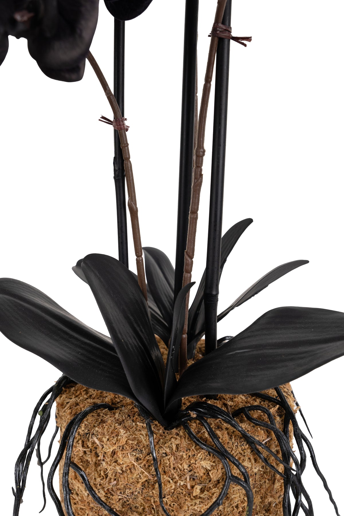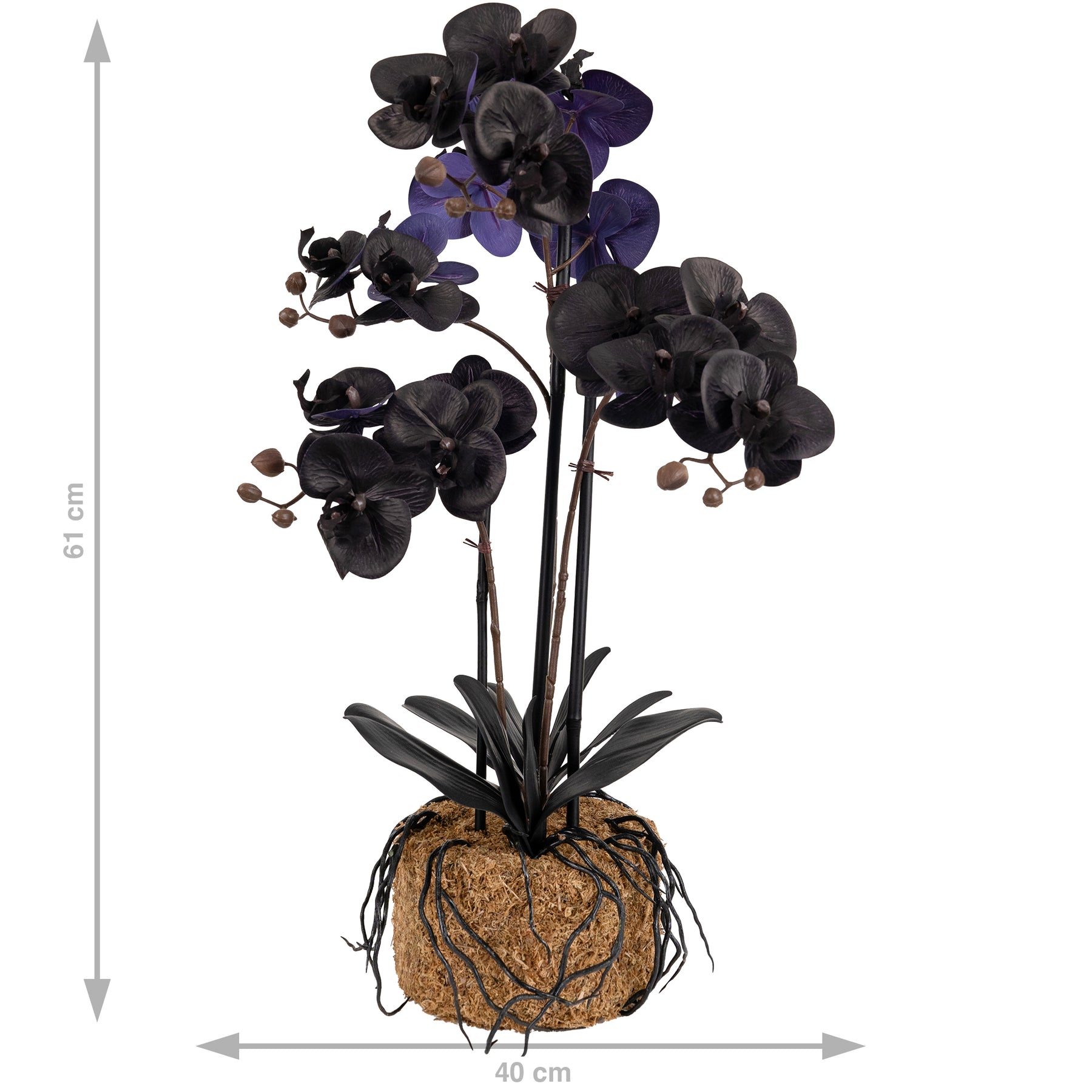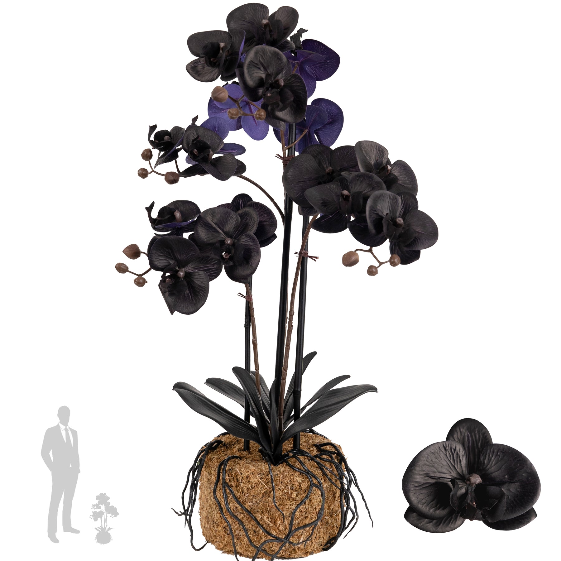 Orhidee artificiala neagra cu aspect natural H59 cm cu 6 tulpini cu frunze negre