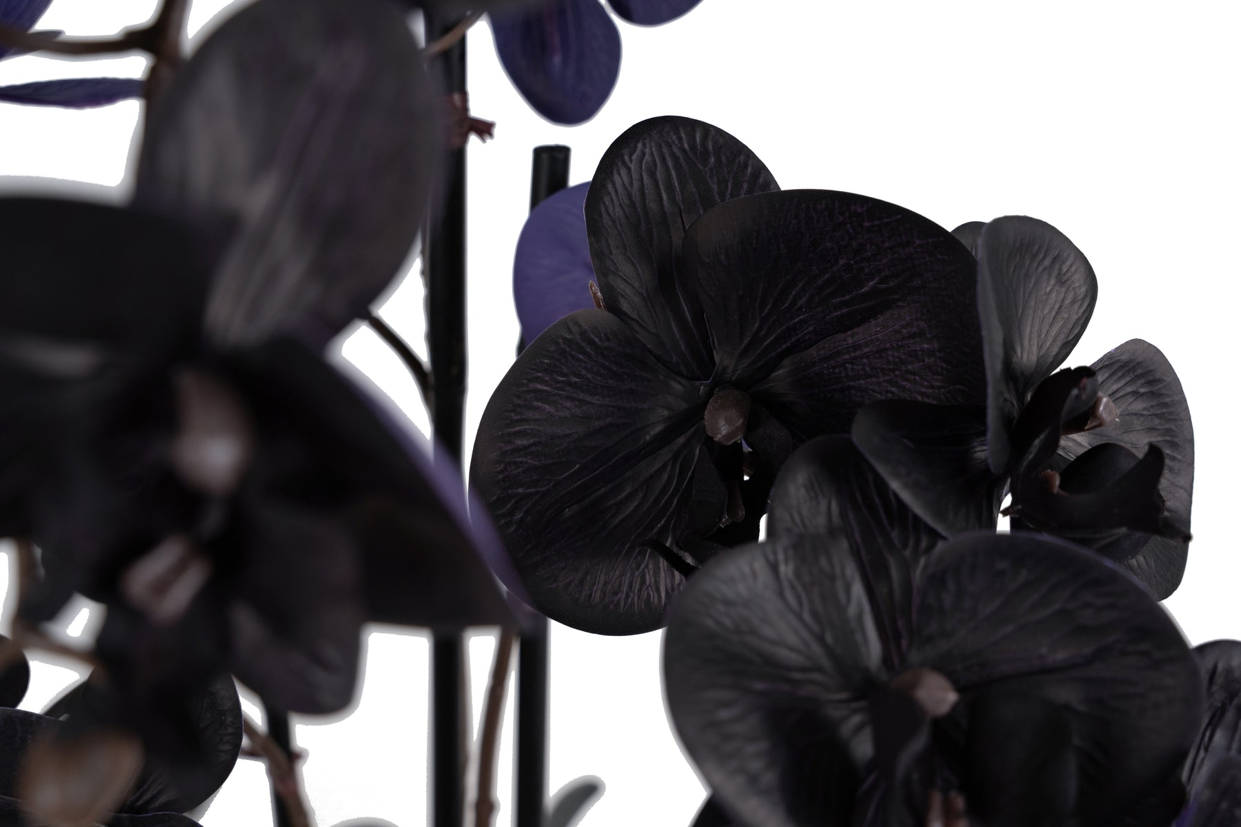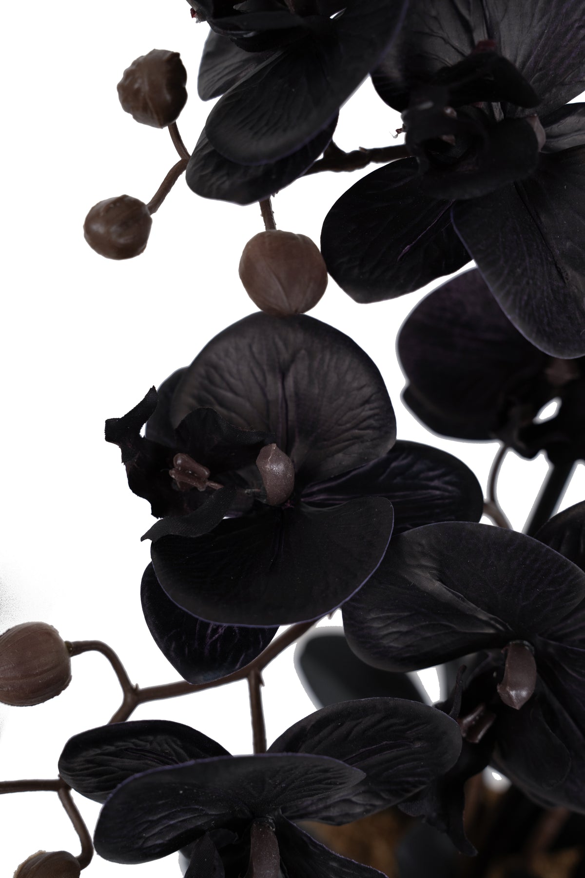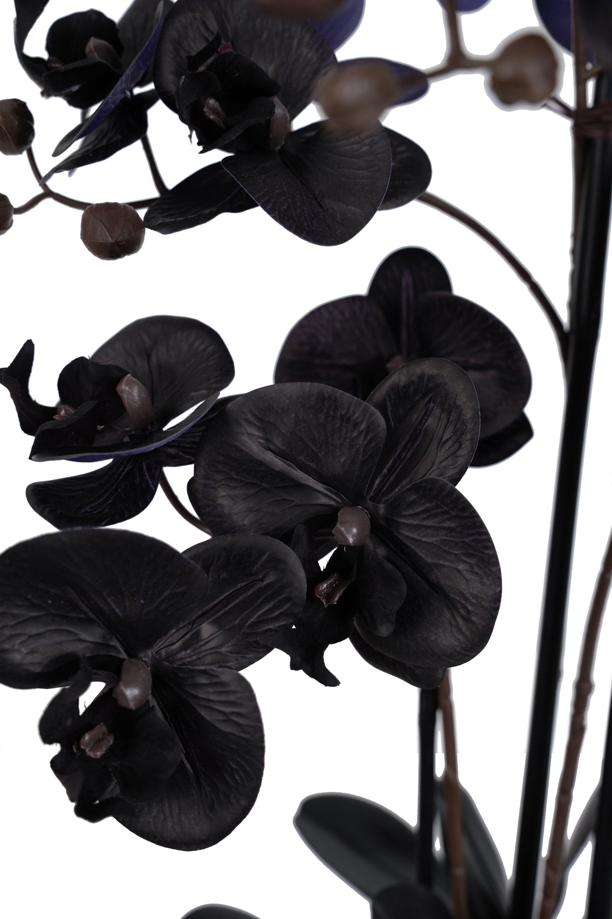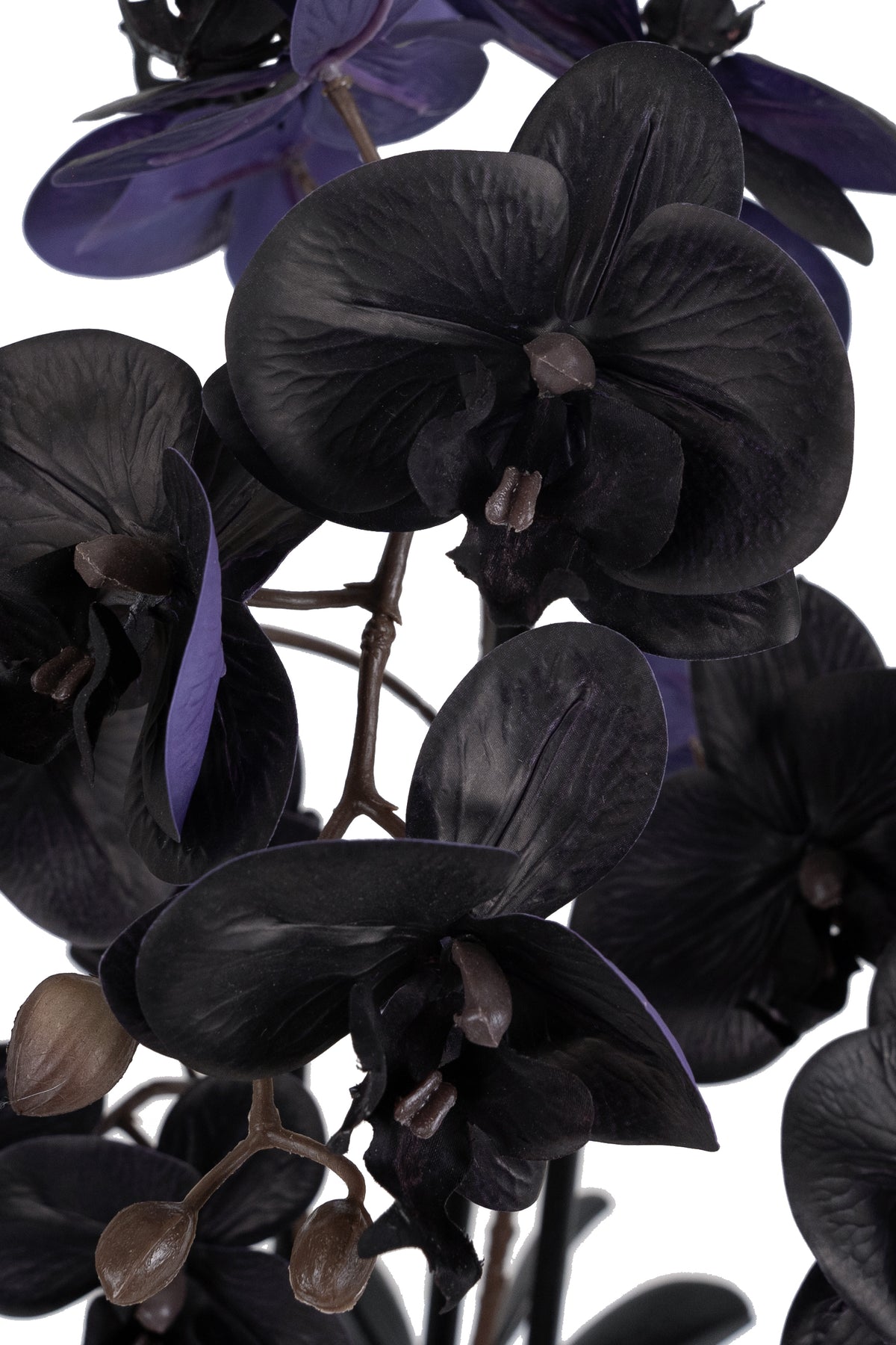 Orhidee artificiala neagra cu aspect natural H120 cm cu 21 tulpini si frunze negre