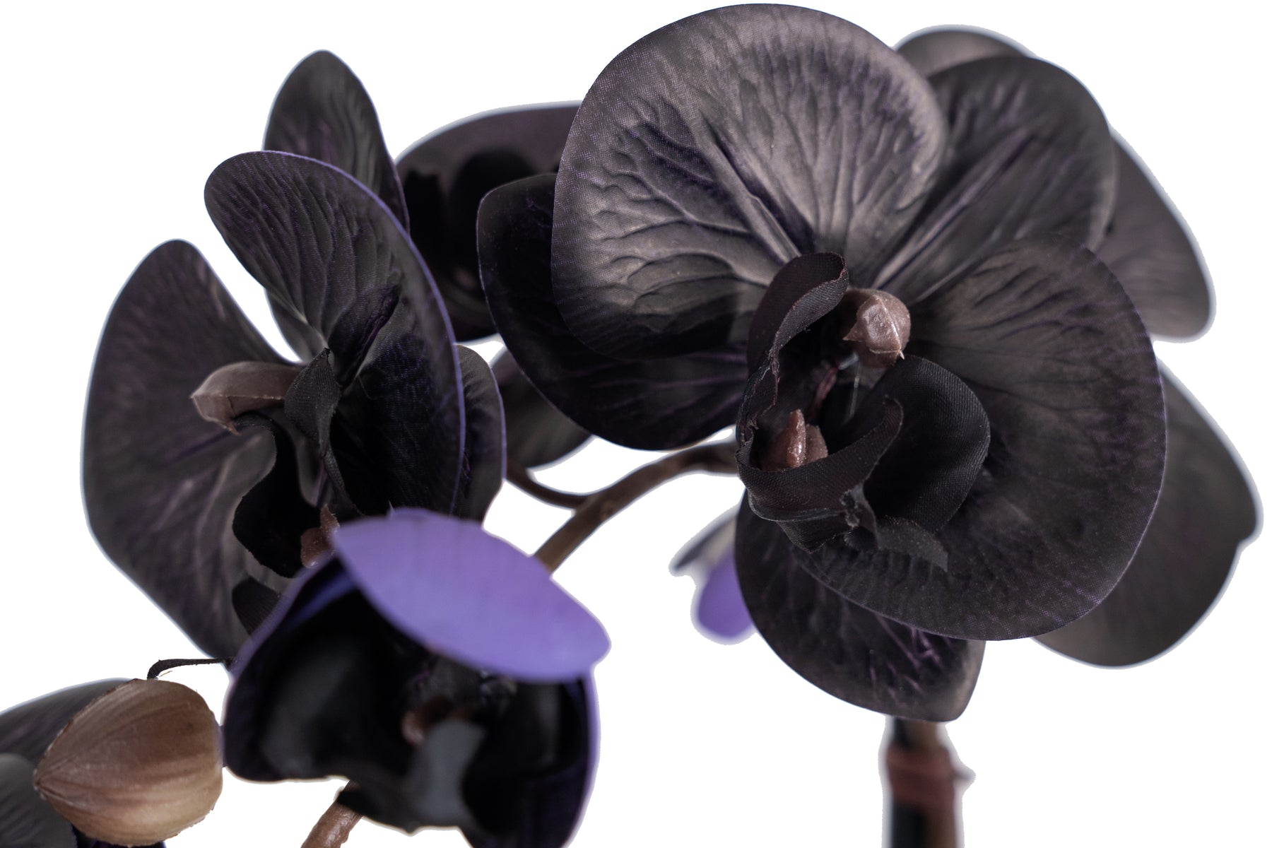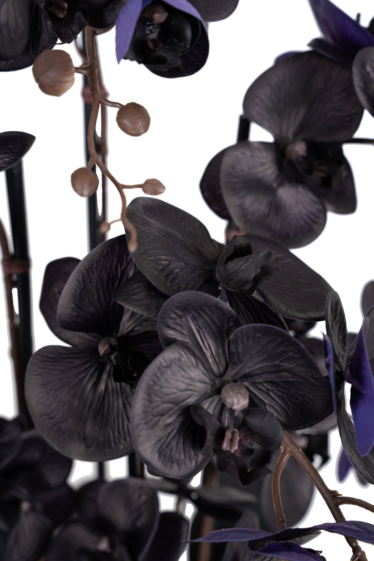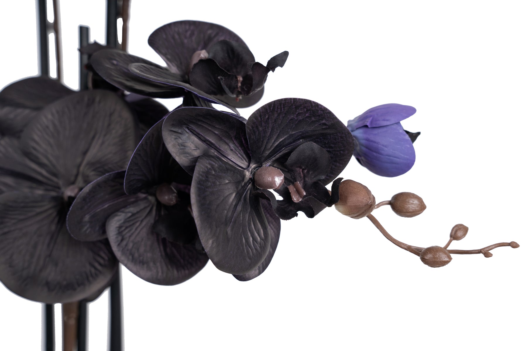 Orhidee artificiala neagra cu aspect natural H120 cm cu 21 tulpini si frunze negre