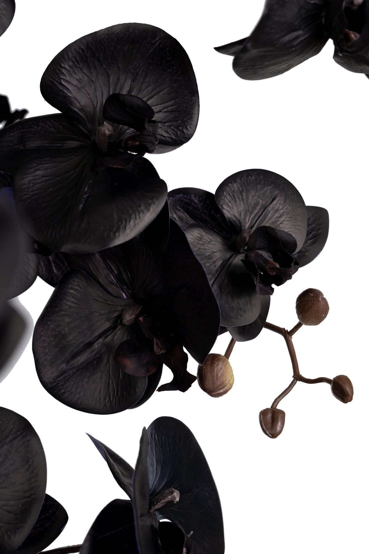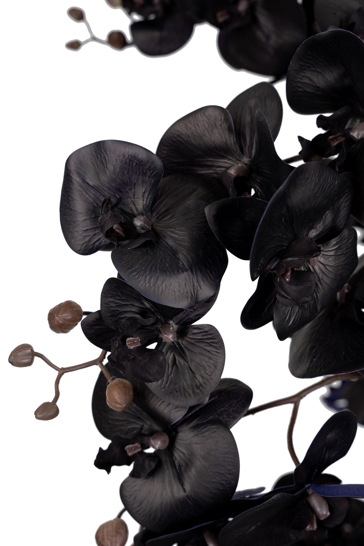Orhidee artificiala neagra cu aspect natural H120 cm cu 21 tulpini si frunze negre