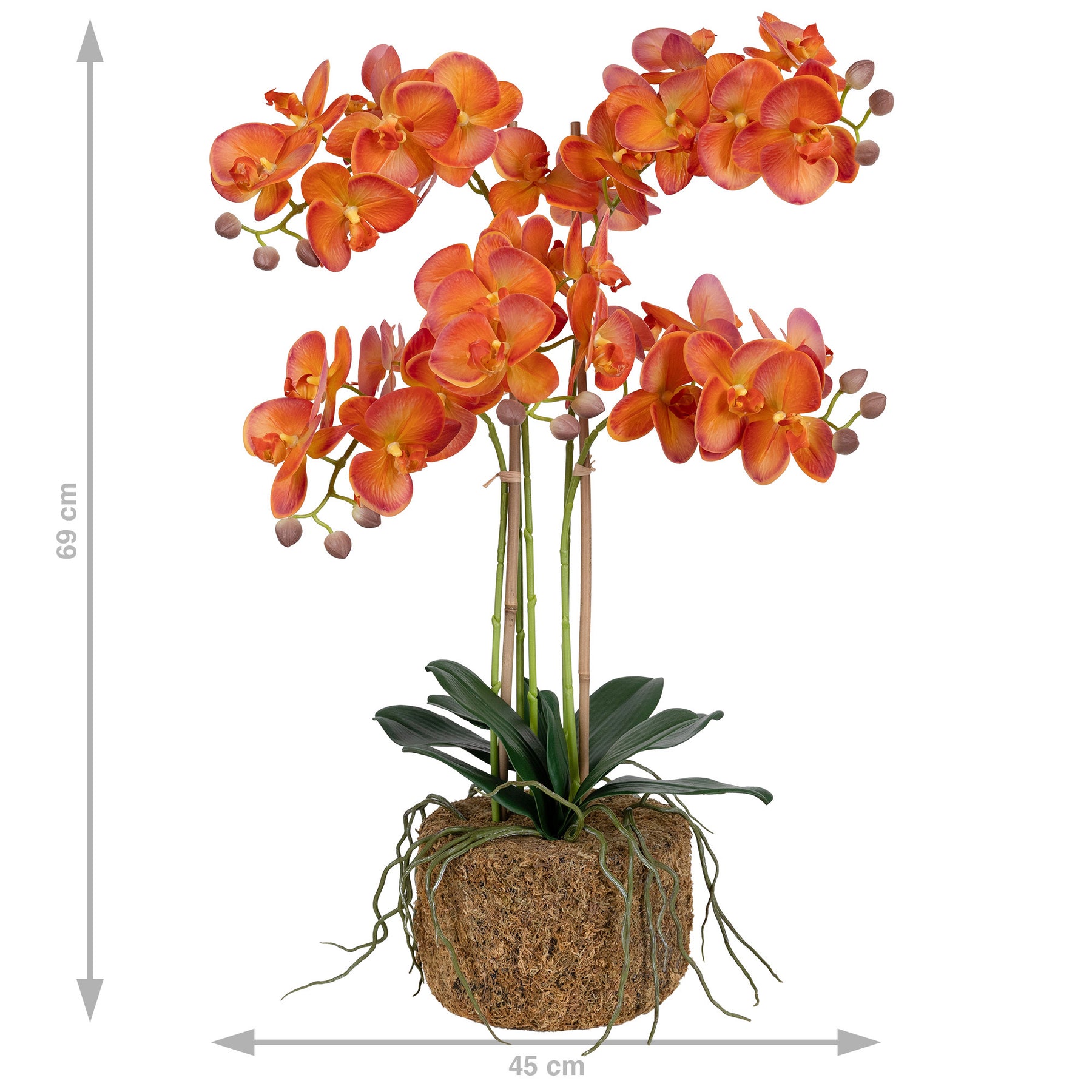 Orhidee artificiala roz cu portocaliu cu aspect natural H90 cm cu 9 tulpini