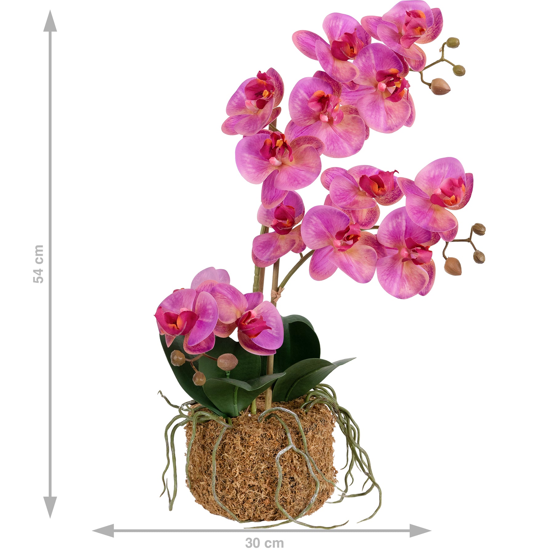 Orhidee artificiala roz-magenta cu aspect natural H61 cm cu 3 tulpini