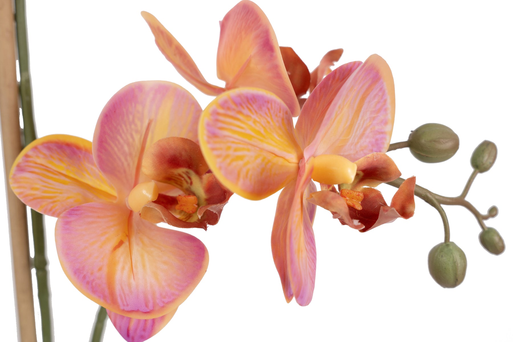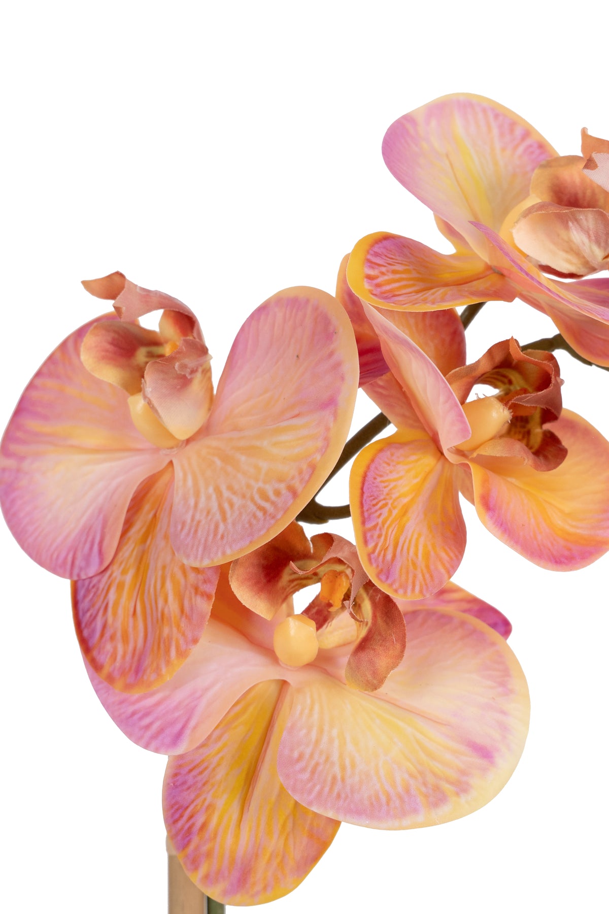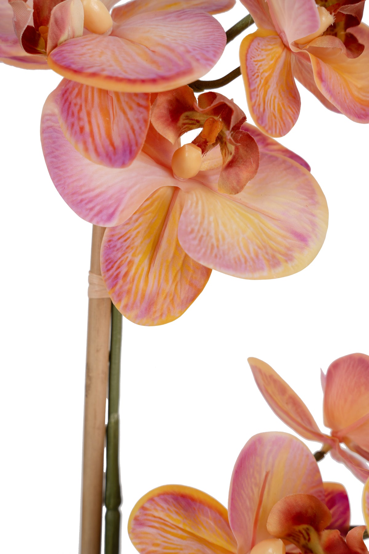 Orhidee artificiala roz cu portocaliu cu aspect natural H90 cm cu 9 tulpini