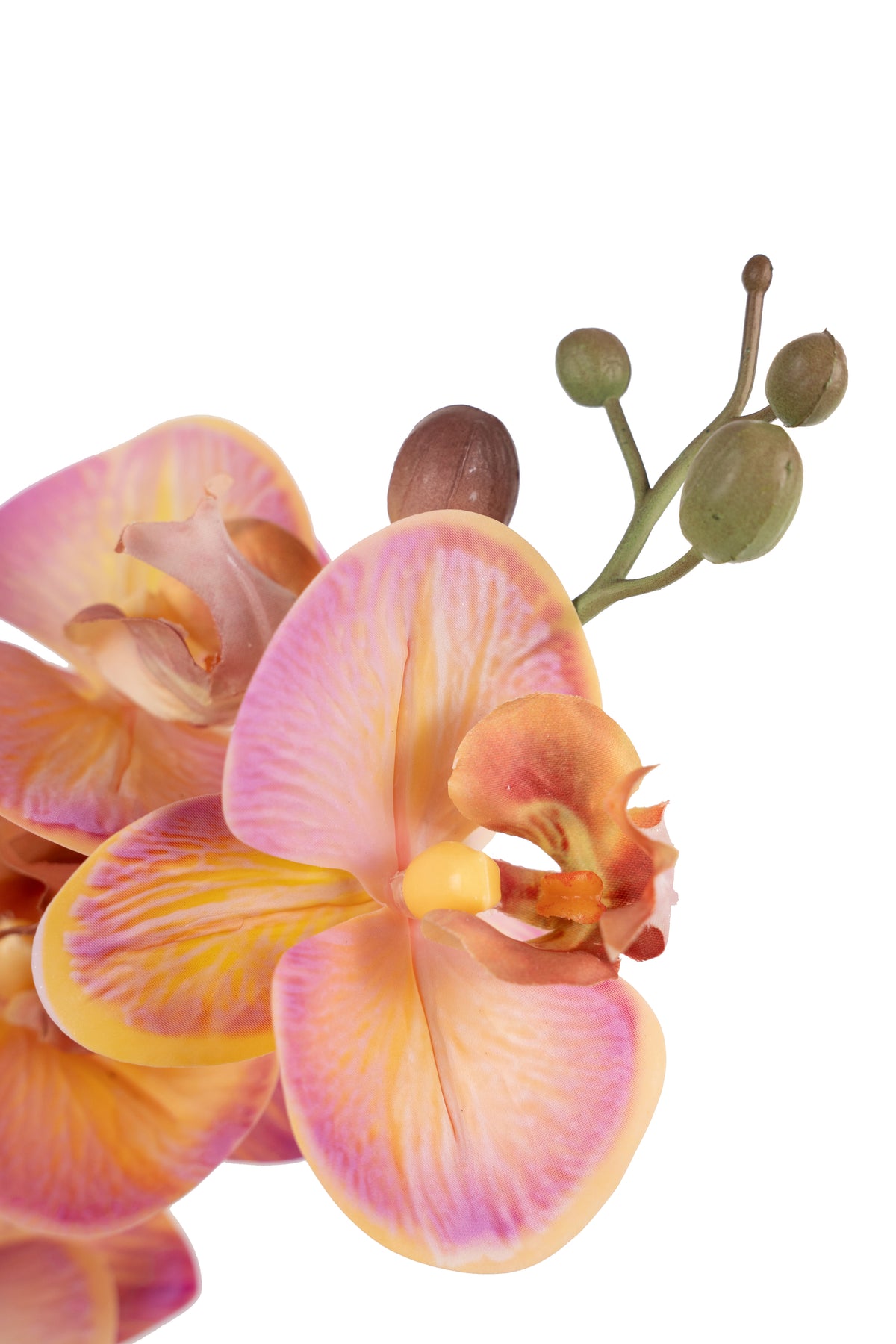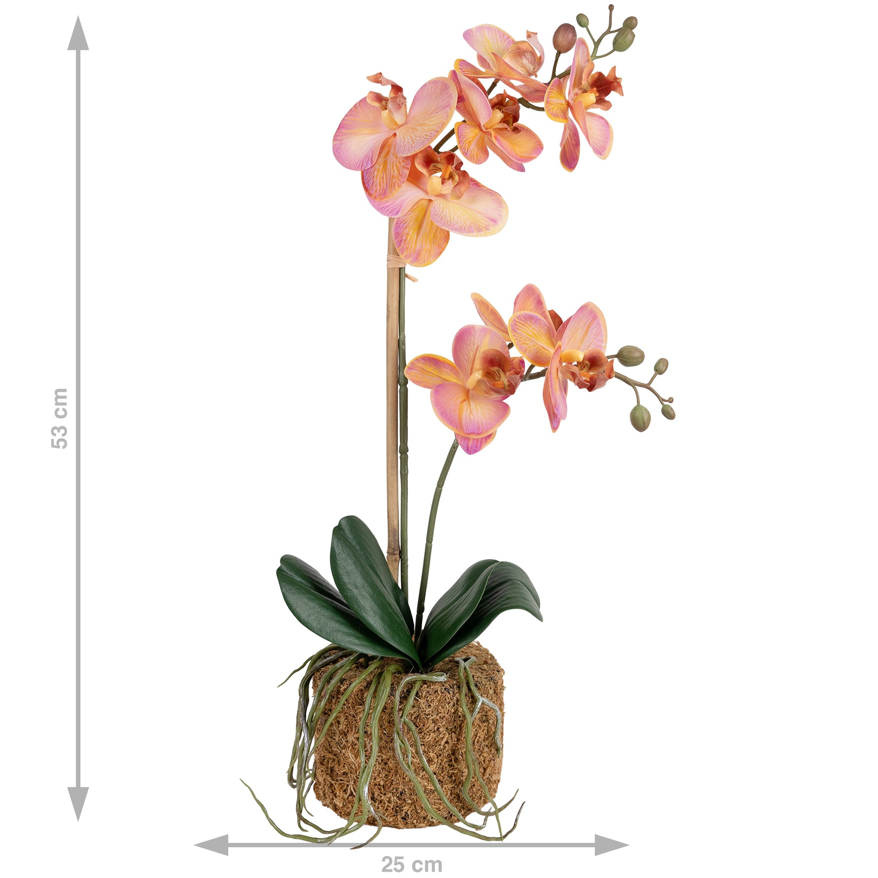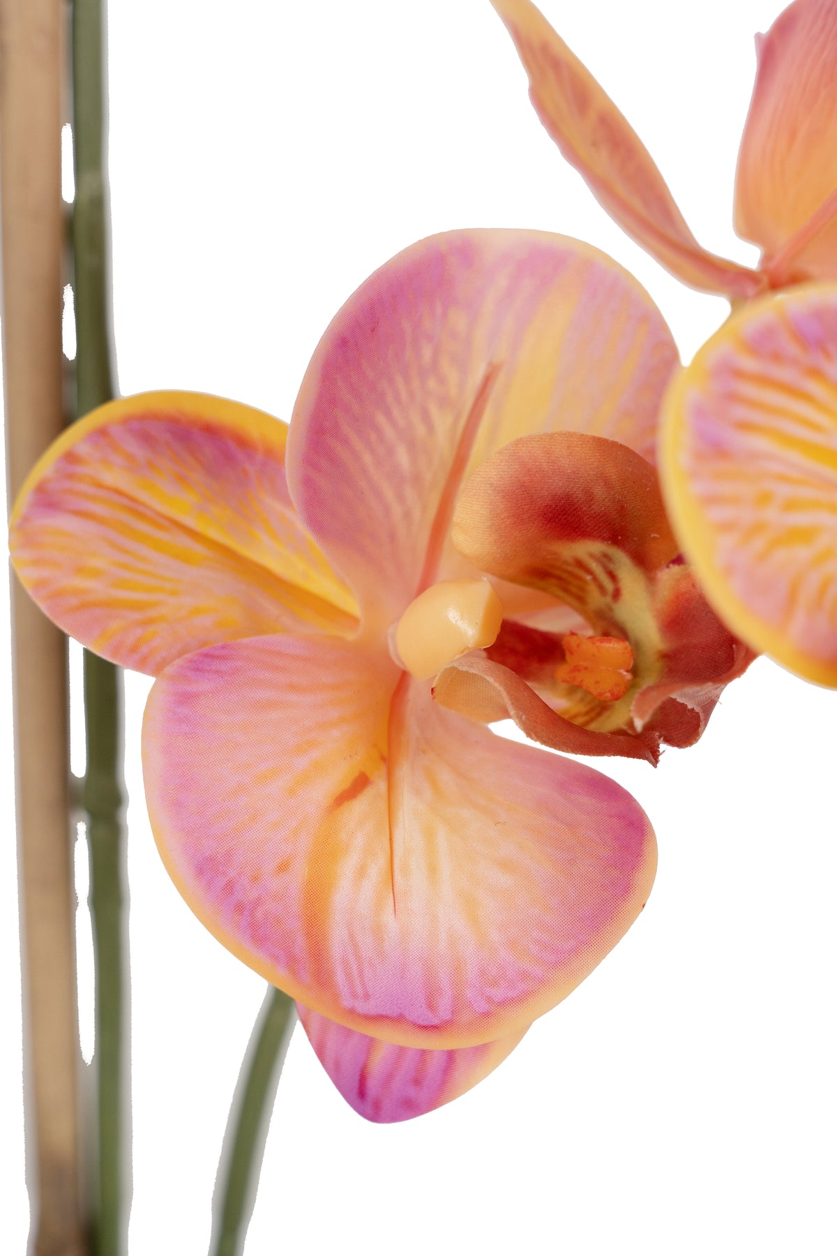 Orhidee artificiala roz cu portocaliu cu aspect natural H90 cm cu 9 tulpini