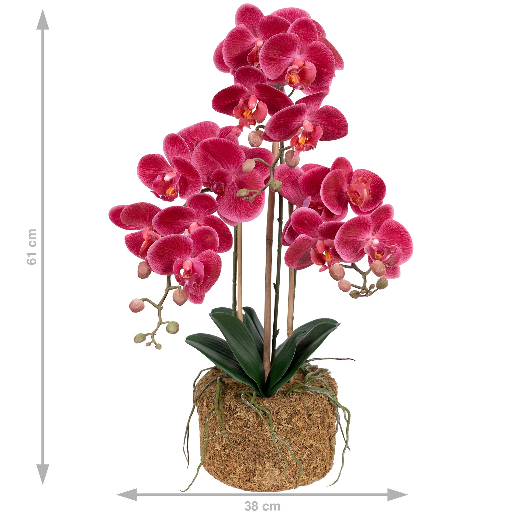 Orhidee artificiala roz-magenta cu alb cu aspect natural H61 cm cu 3 tulpini