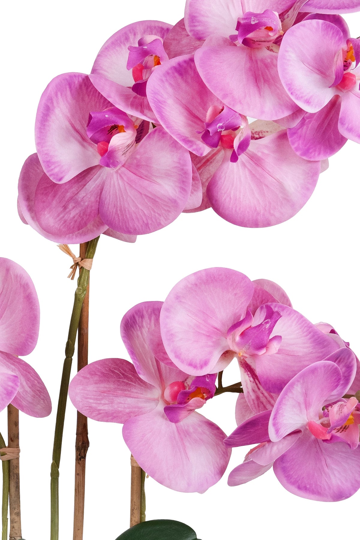 Orhidee artificiala roz-magenta cu aspect natural H61 cm cu 3 tulpini