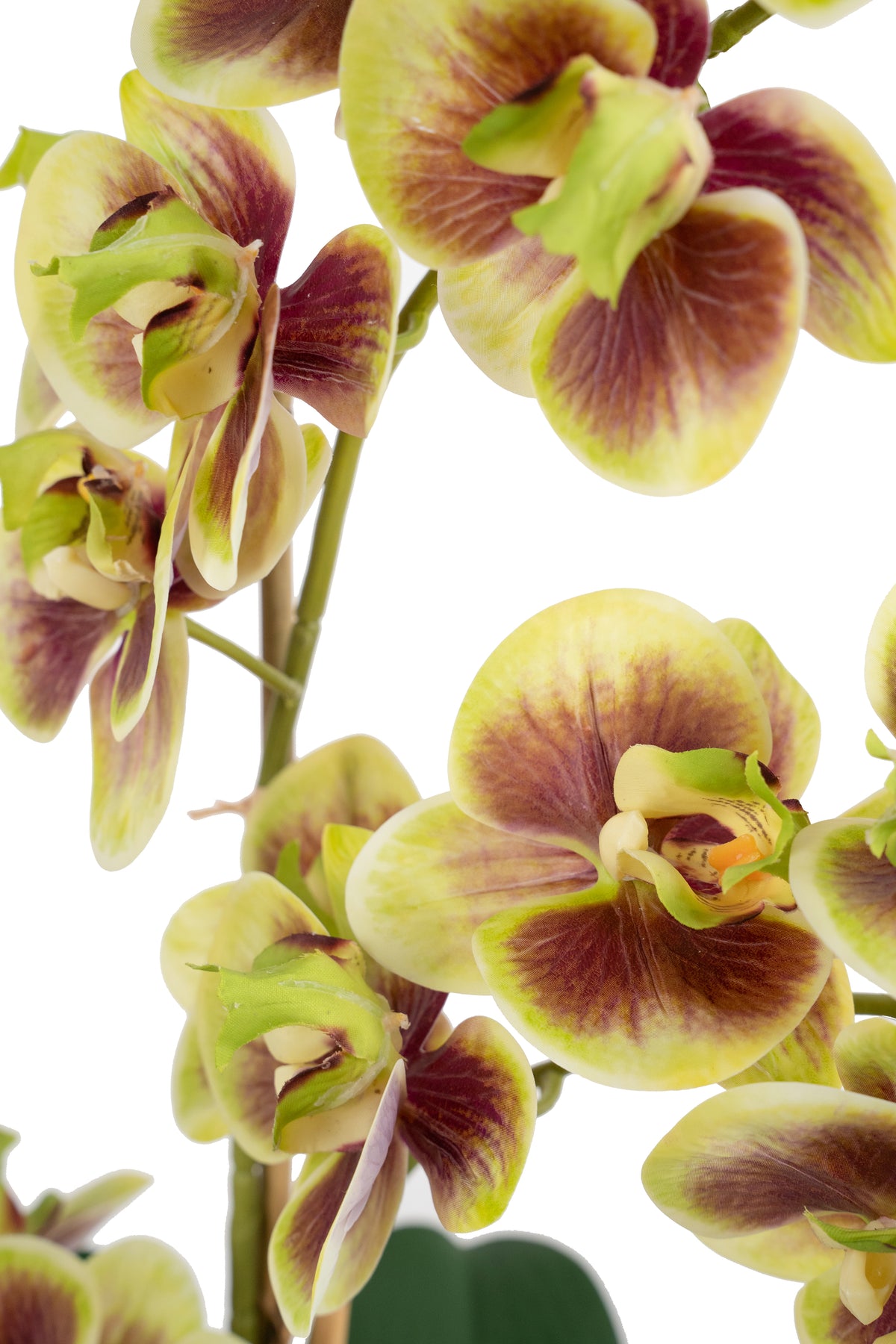 Orhidee artificiala grena cu galben cu aspect natural H55 cm cu 4 tulpini
