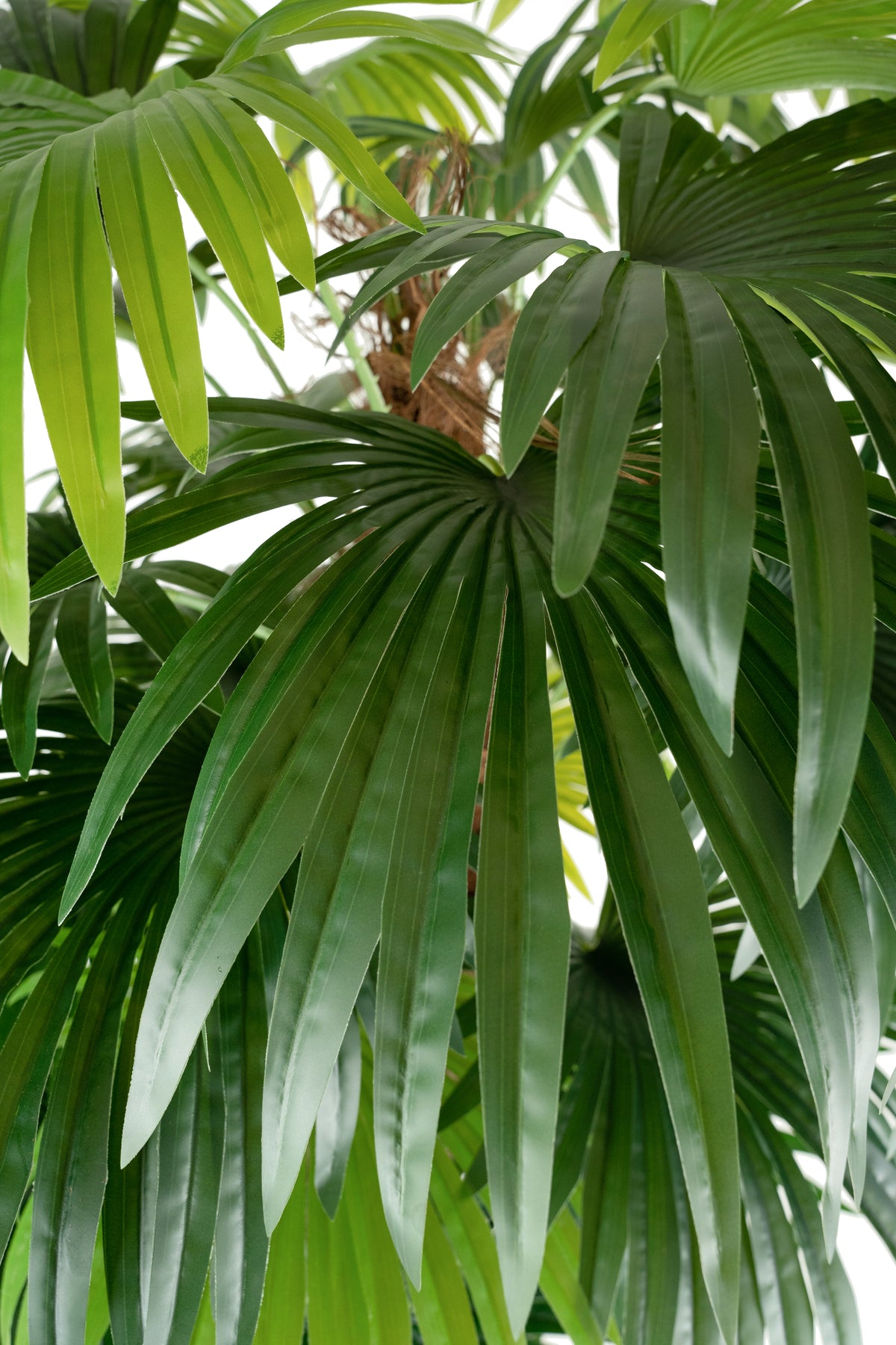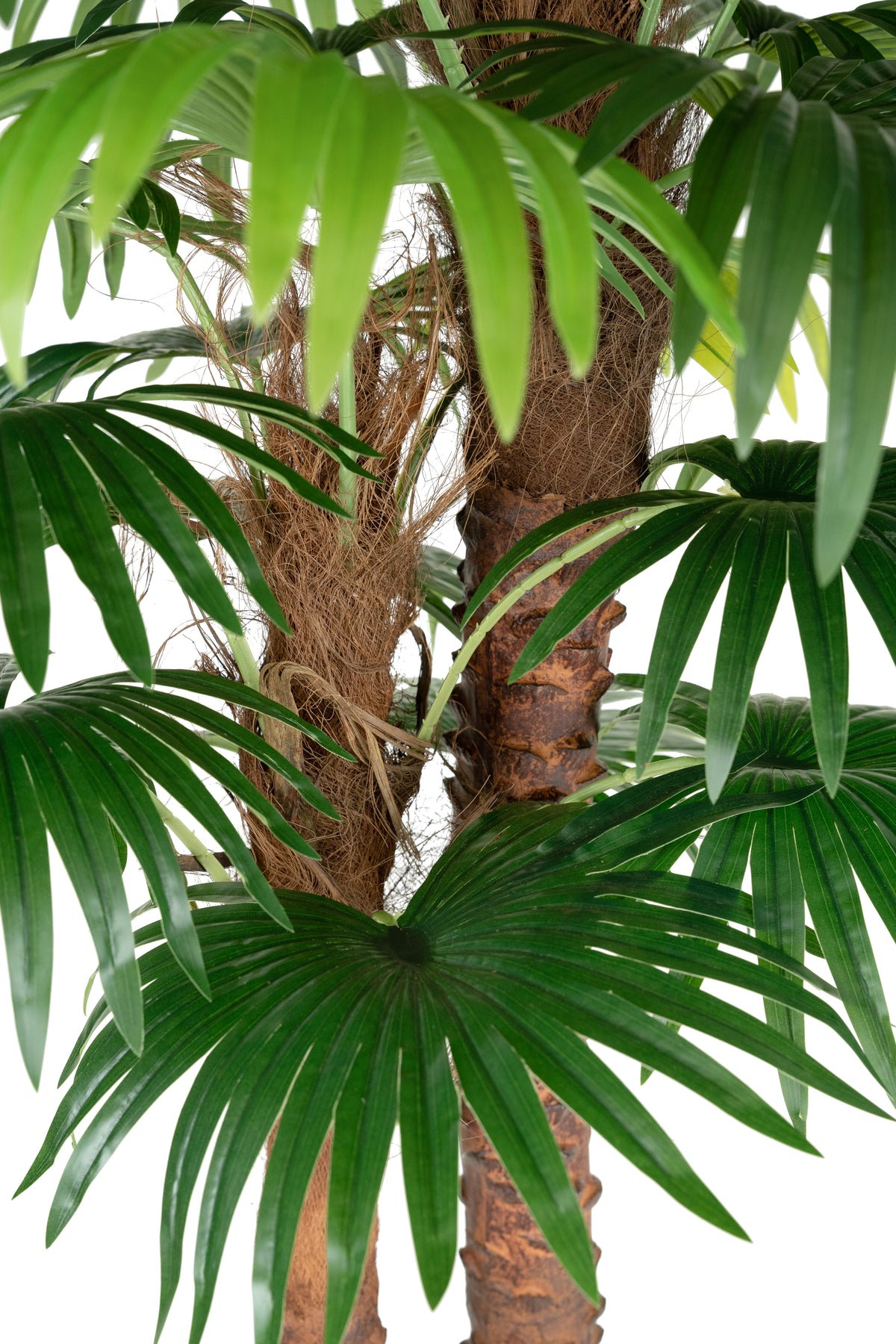 fibra de palmier naturala,frunzele din material textil acoperit cu pelicula siliconatica,LPDE (polietilena de joasa densitate),trunchi din fibra de sticla multistrat cu aspect natural de scoarta de copac