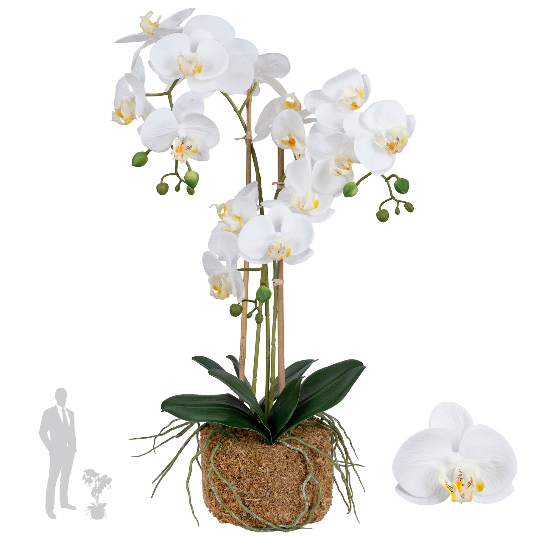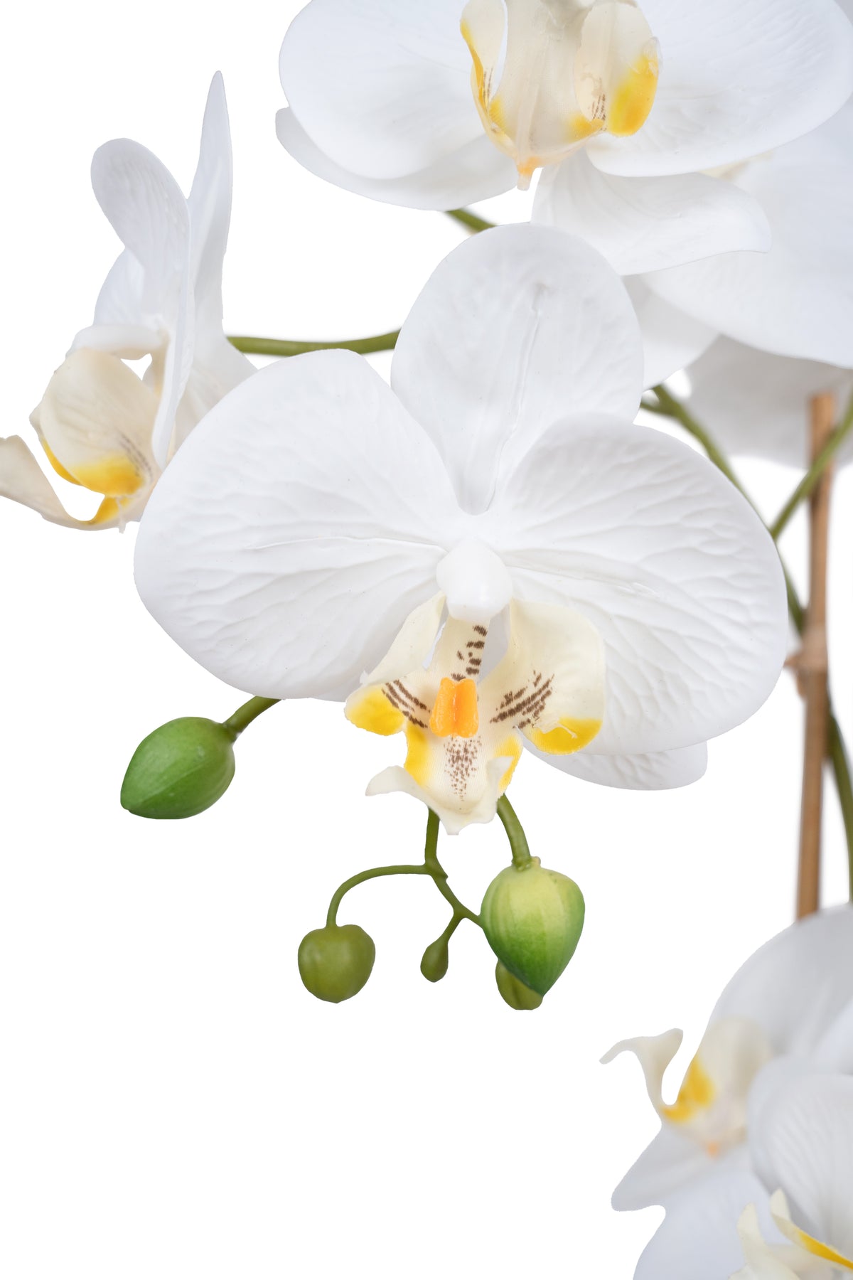 Orhidee artificiala alba cu aspect natural H120 cm cu 21 tulpini