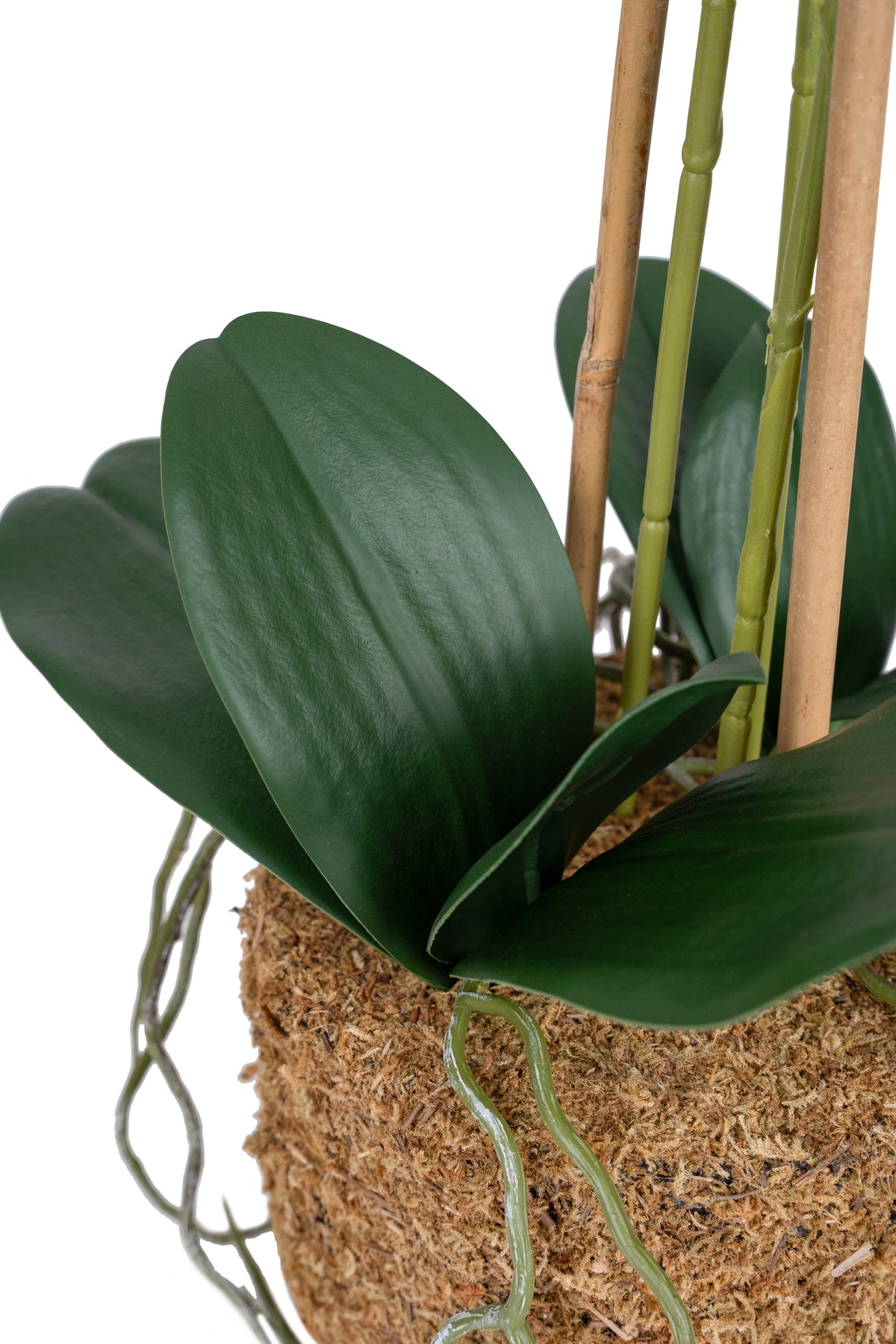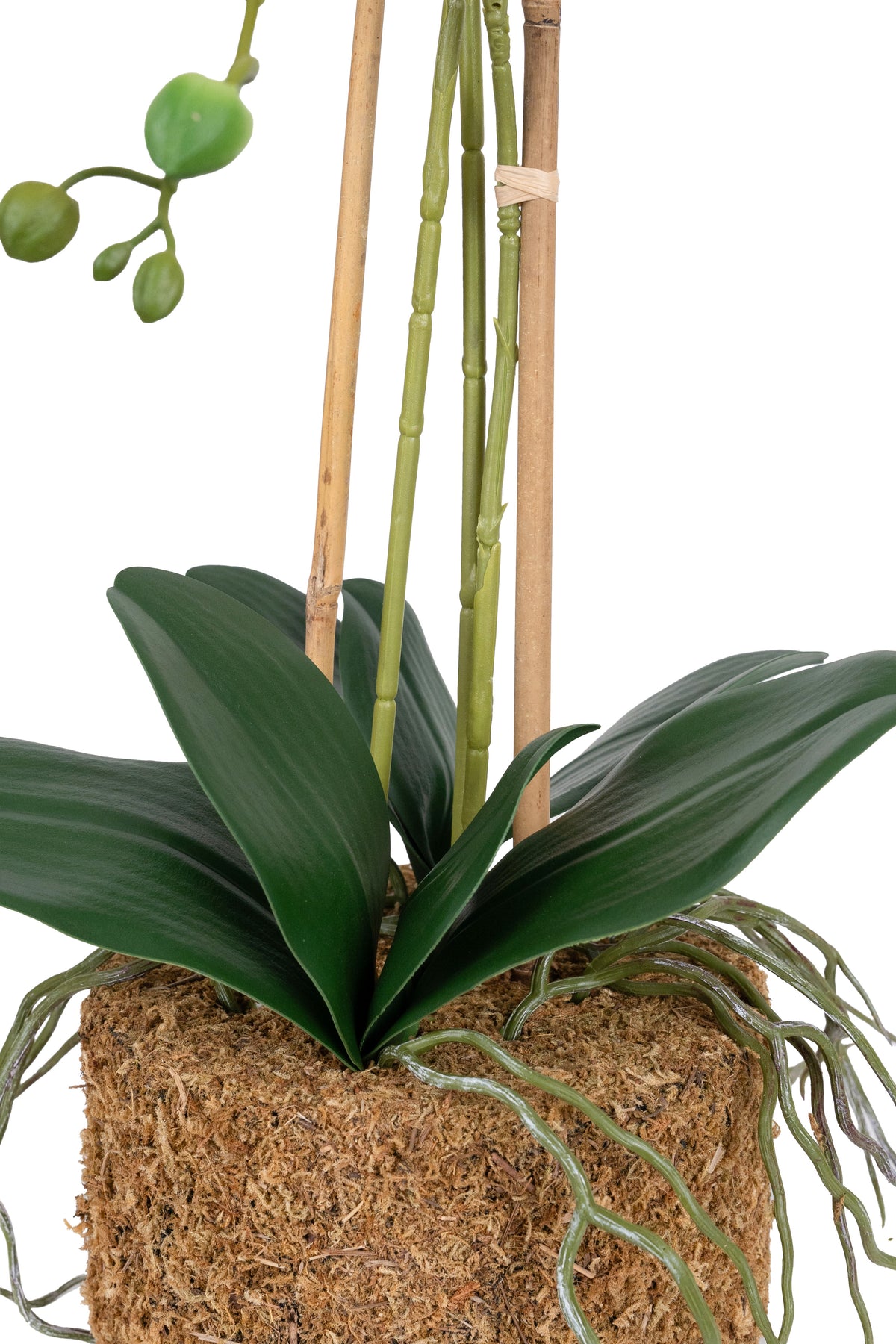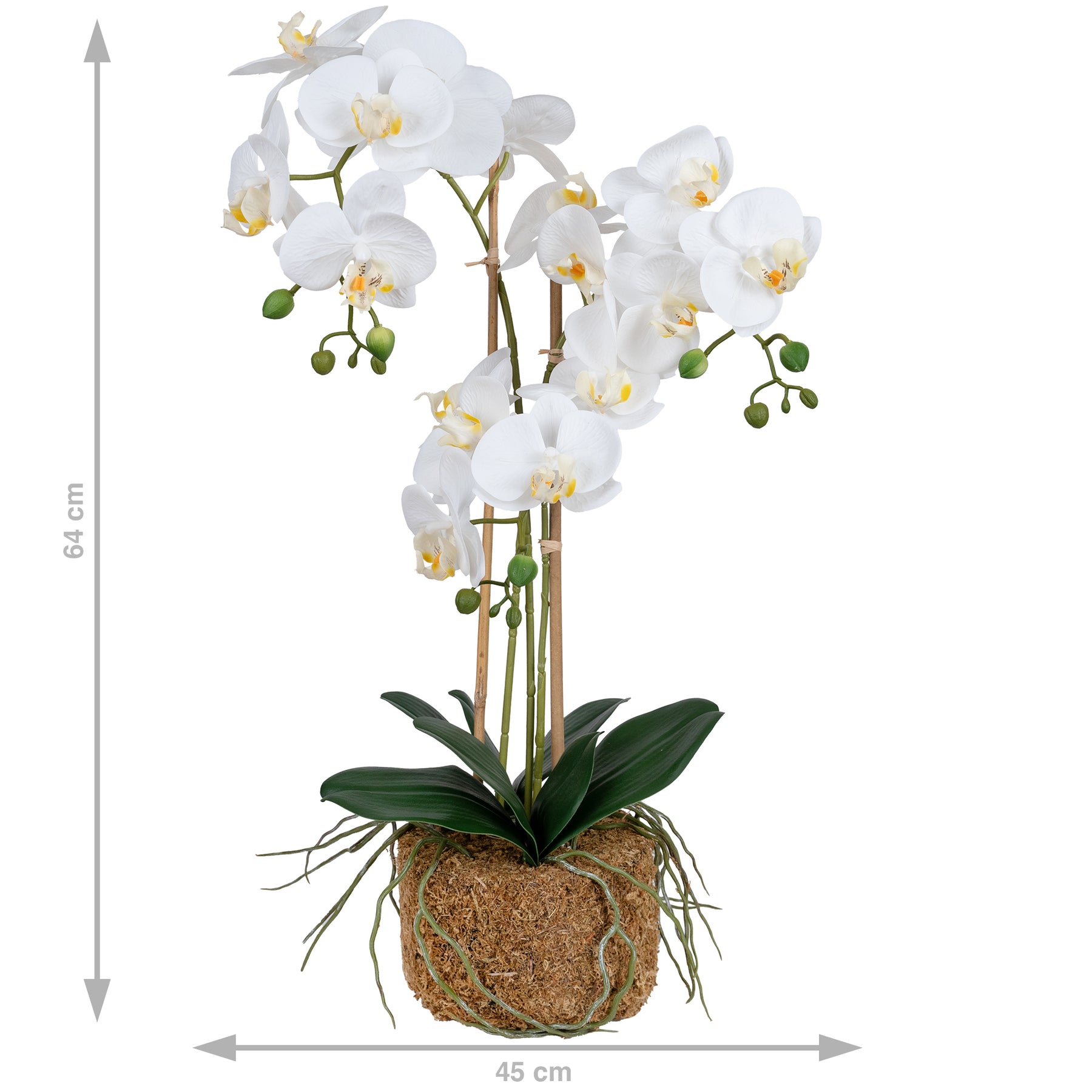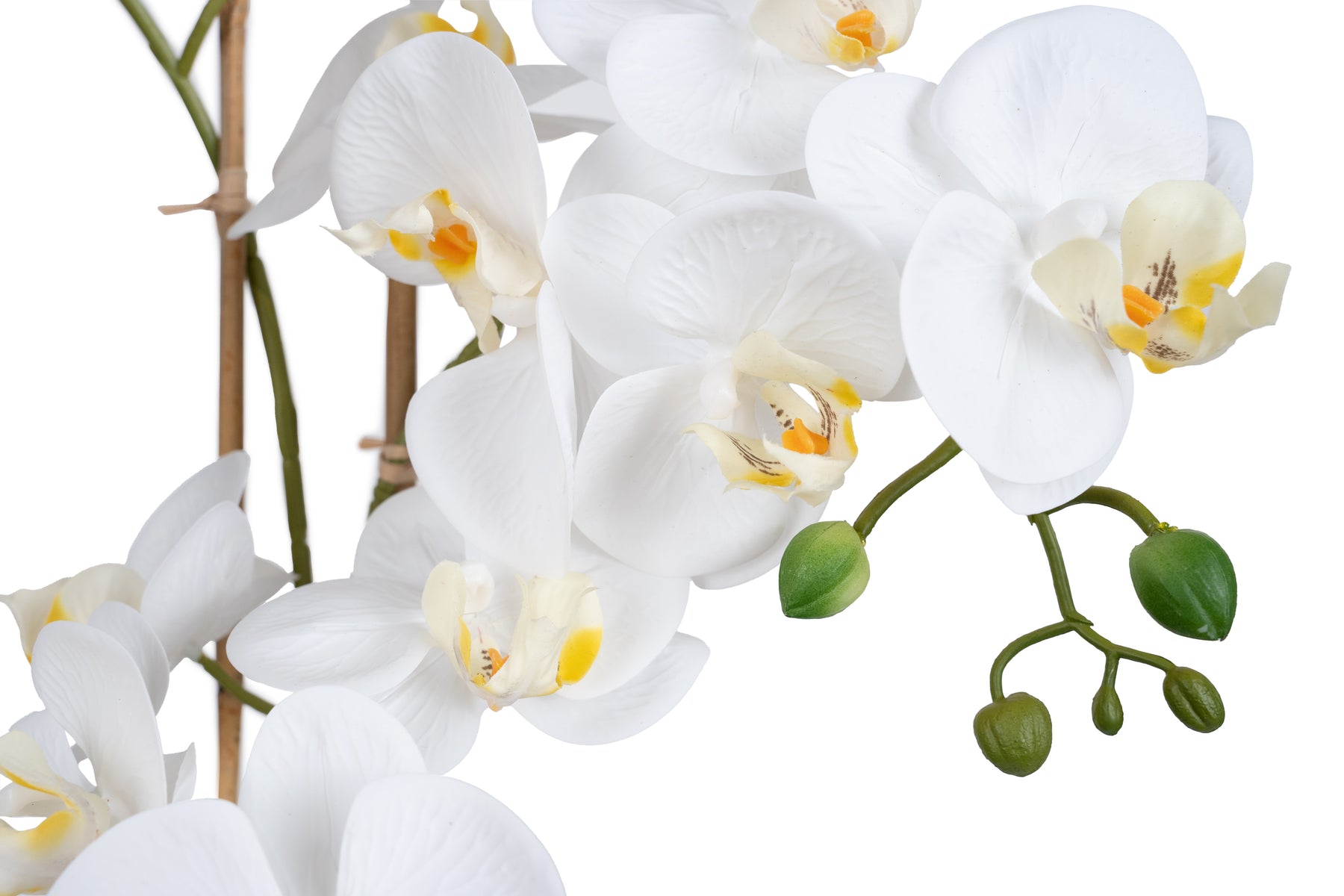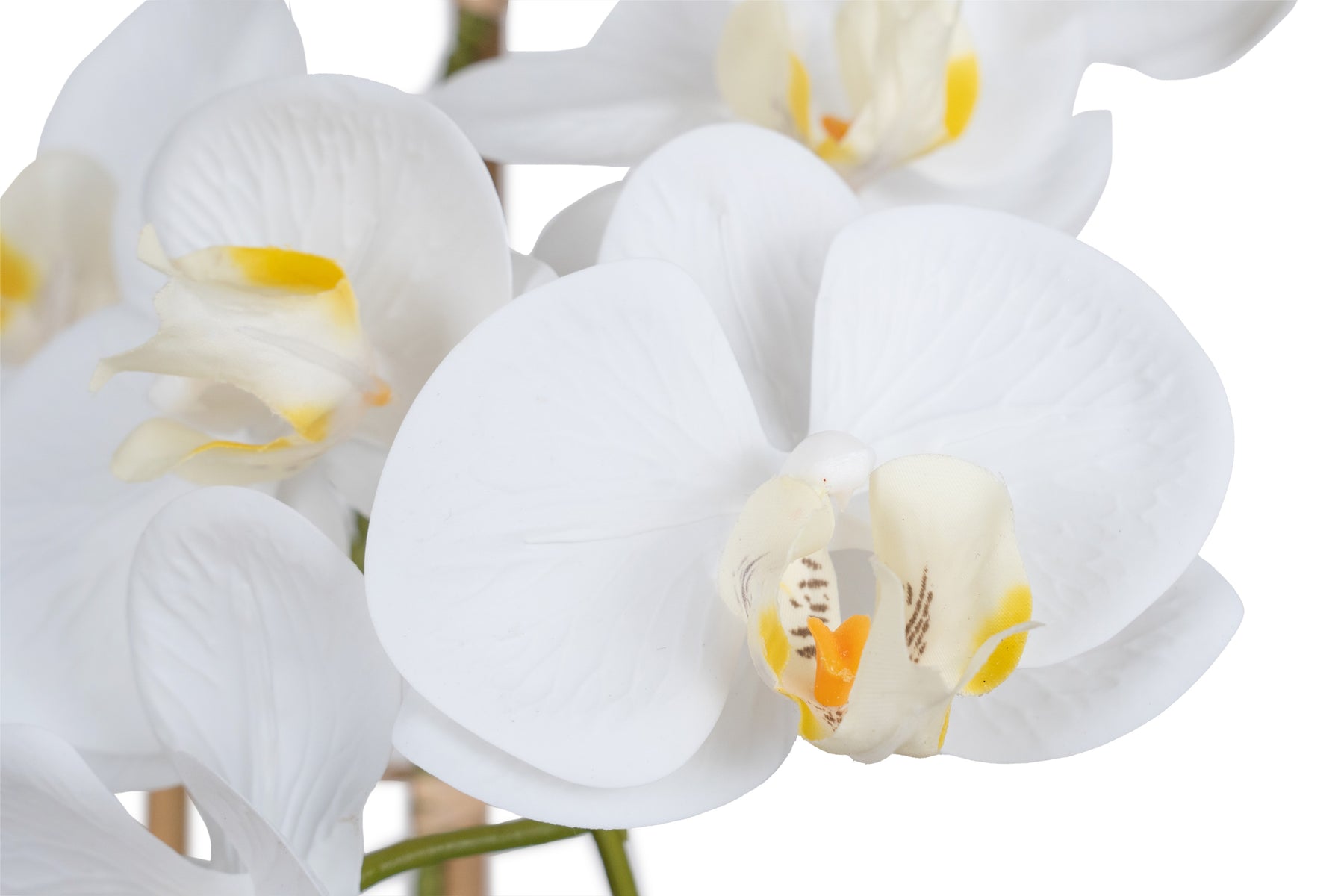 Orhidee artificiala alba cu aspect natural H61 cm cu 3 tulpini si 20 de flori cu 3 bete de bambus