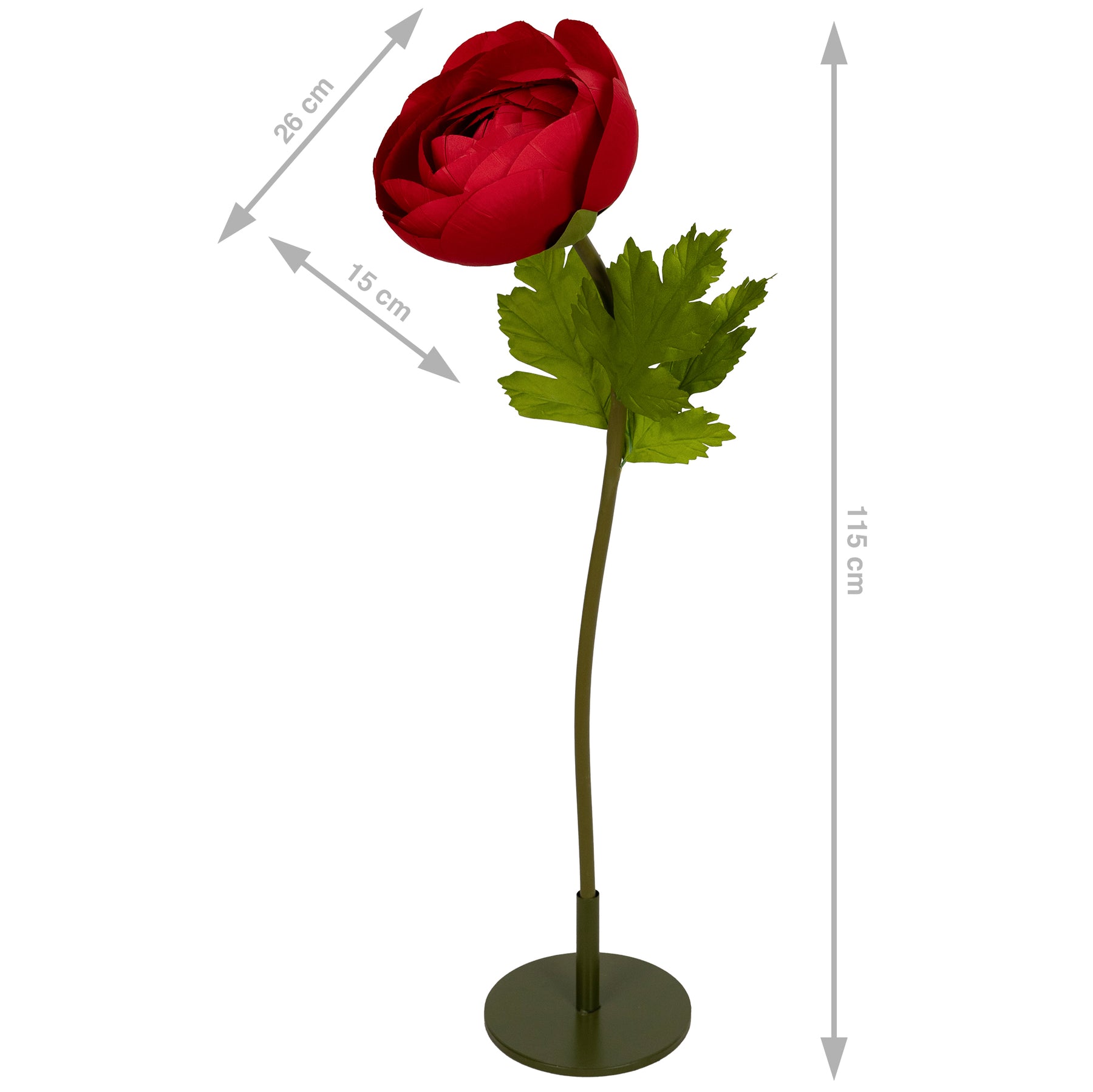 Ranunculus artificial D26xH115 cm burgundy cu tulpina gigant XL fara suport