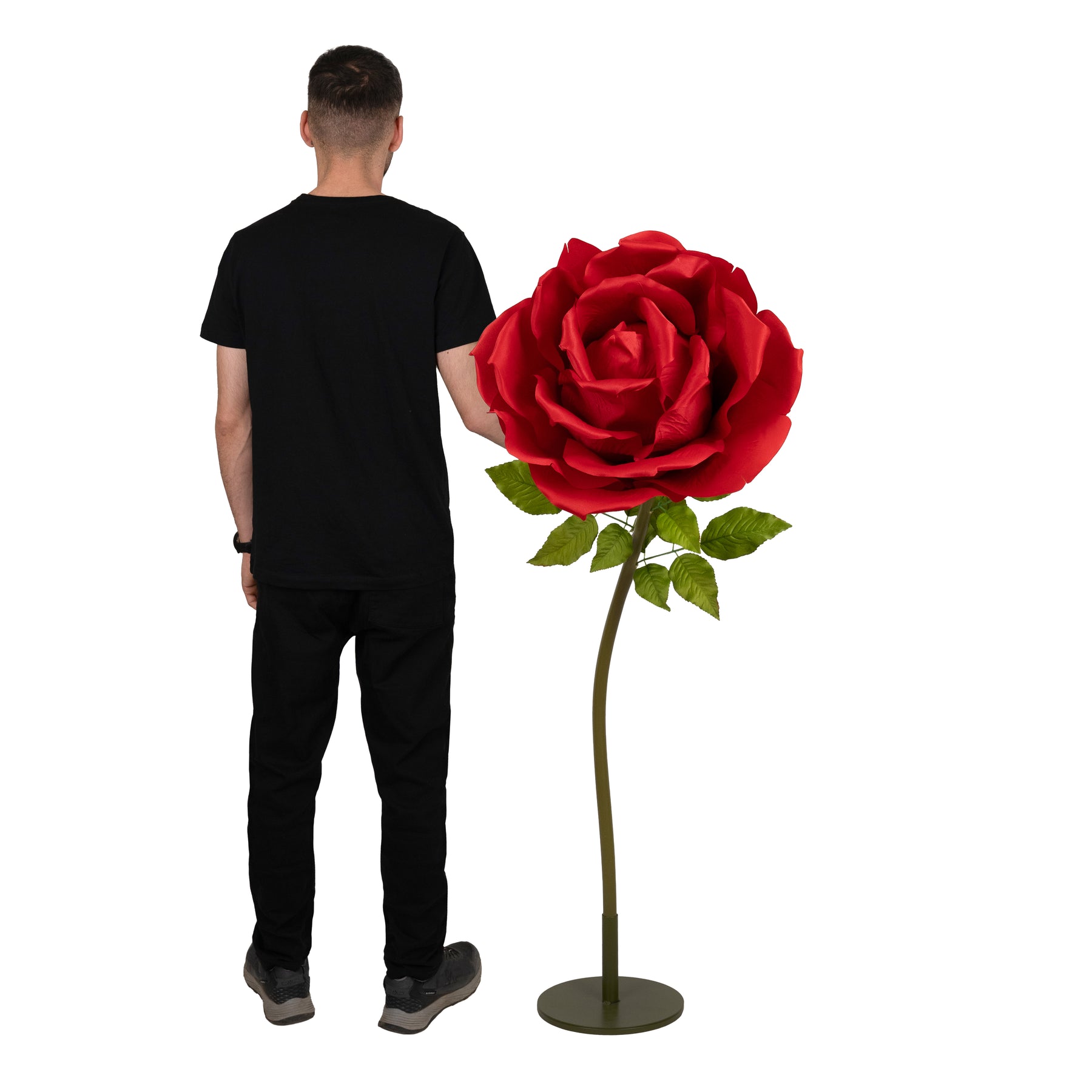 Trandafir artificial D65xH170 cm rosu cu tulpina fara suport