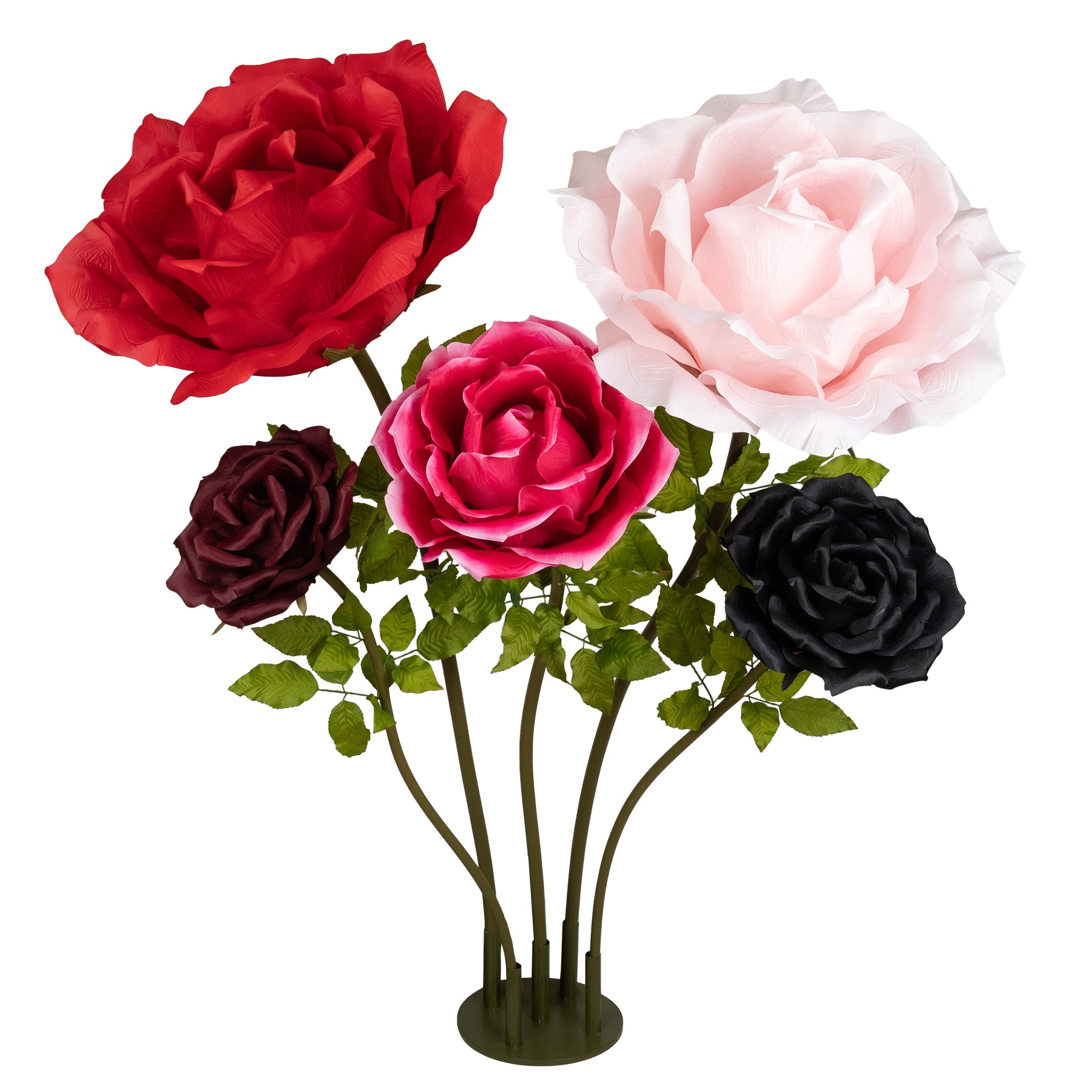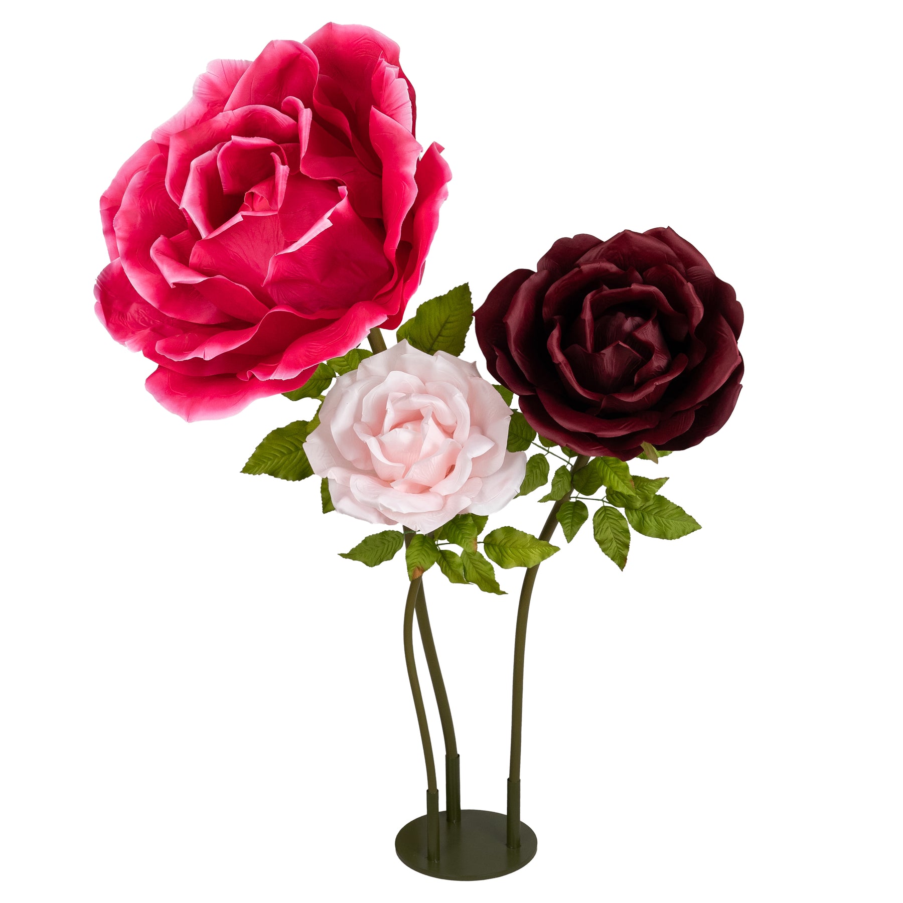 Bujor artificial D48xH130 cm rosu cu tulpina gigant XXL fara suport